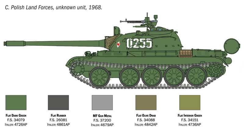 Informationen zum Original und Modell: Gegen Ende des Zweiten Weltkriegs produzierte die Sowjetunion eine Reihe mittlerer Panzer vom Typ T-54/T-55. Das Modell T-55 übernahm einige der wichtigsten Merkmale des berühmten Panzers T-34. Dies lag vor allem an der Einfachheit der Konstruktion, der Kampfeffektivität, der kostengünstigen Produktion und der Möglichkeit einer einfachen provisorischen Reparatur direkt auf dem Schlachtfeld. Dank dieser Eigenschaften wurde der T-55 nicht nur bei den Verbündeten des Warschauer Pakts, sondern einige Jahre später auch in einigen afrikanischen und asiatischen Ländern in Dienst gestellt. Er gilt als einer der besten Kampfpanzer, die nach dem Zweiten Weltkrieg produziert wurden. Seine Entwicklung basierte auf dem Design des Modells T-54, das um einen verbesserten Motor, mehr Platz für Munition und einen wirksameren ABC-Schutz (nuklearer, biologischer und chemischer Schutz) erweitert wurde. Es war mit einer 100-mm-Kanone bewaffnet und verfügte zusätzlich über eine wirksamere und schwerere Panzerung, wodurch sich sein Gesamtgewicht auf 35 Tonnen erhöhte. Es wurde jahrzehntelang auf vielen Schlachtfeldern eingesetzt und erlangte allmählich den Ruf eines der angesehensten Panzerfahrzeuge der Militärgeschichte.