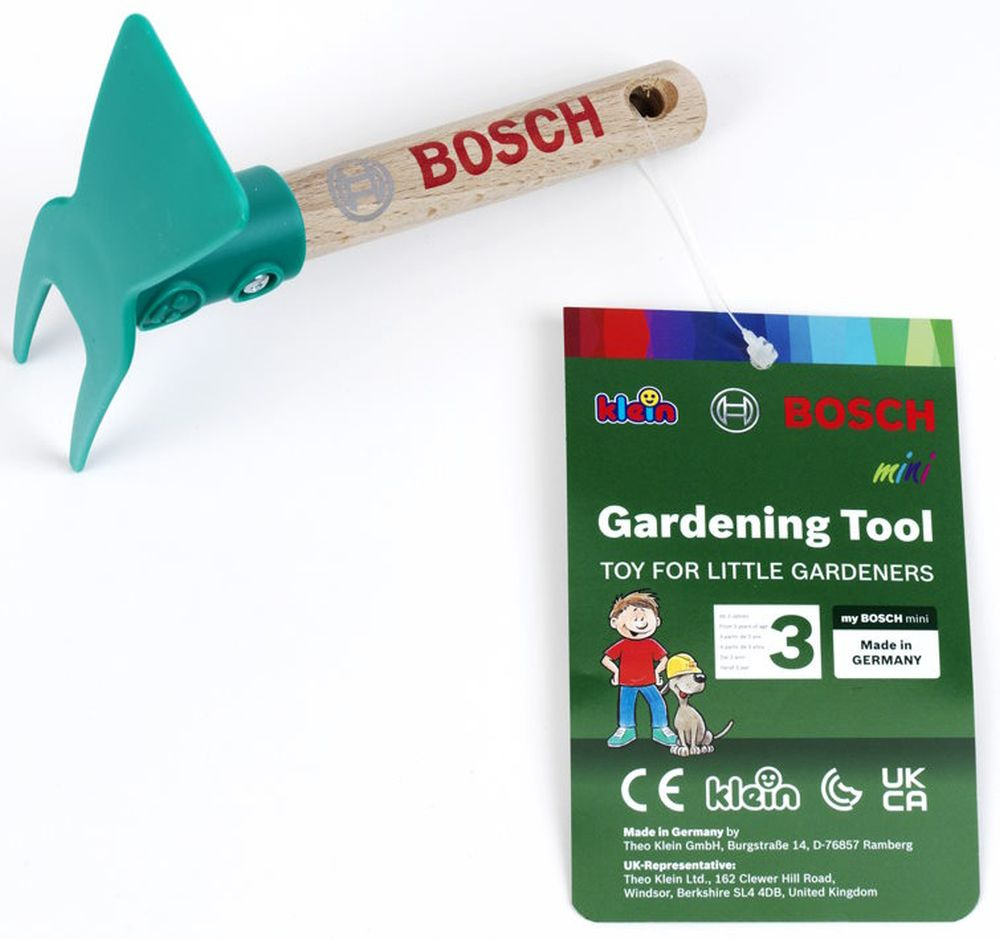 Zahradní hřábě Bosch s dřevěnou násadou pro malého zahradníka. Vhodné pro děti od 3 let.