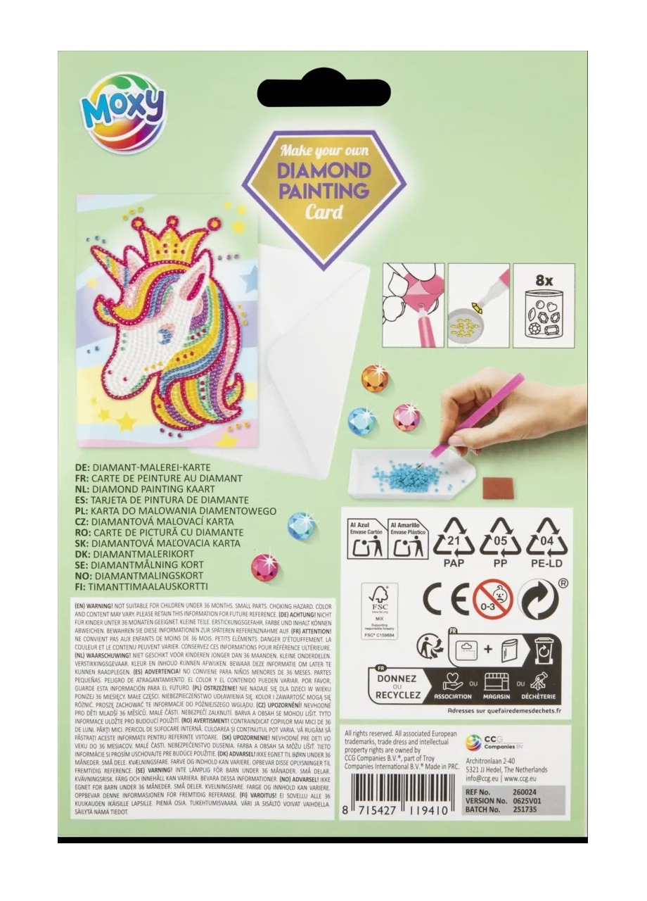 Kreativní sada vytvoř si svůj diamantový obrázek o rozměrech 18x13 cm, nalepuj diamanty/kamínky na jim přidělená čísla na předloze až ti vznikne nádherný třpytivý obraz plný diamantů, sada obsahuje několik druhů diamantů/kamínků, obrázek/předlohu, aplikační pero, lepící čtvereček, tácek a také obálku, kdyby ses rozhodl obrázek někomu darovat jako dárek