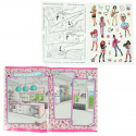 Úžasný sešit s motivem Barbie, který obsahuje mnoho listů s pozadími/scénami a listy s kvalitními samolepkami, které lze odlepit a znovu nalepit. Sešit také obsahuje 2 listy omalovánek