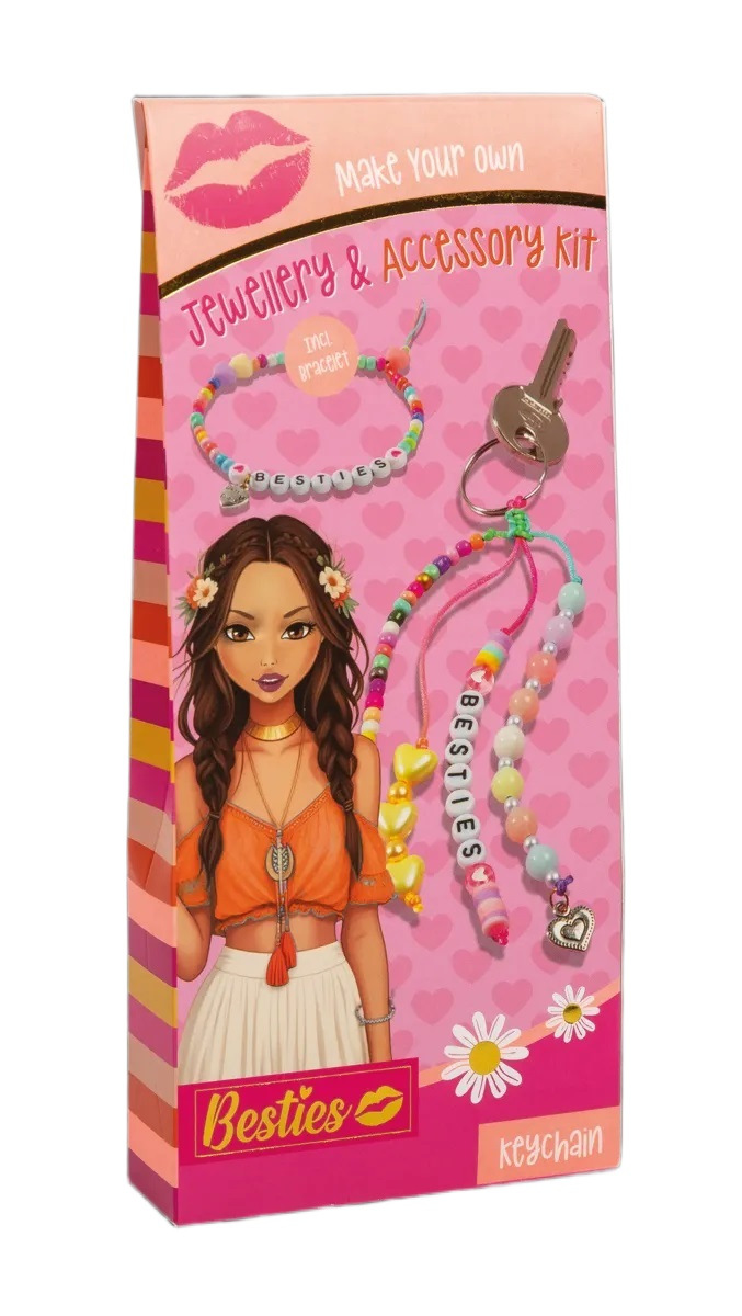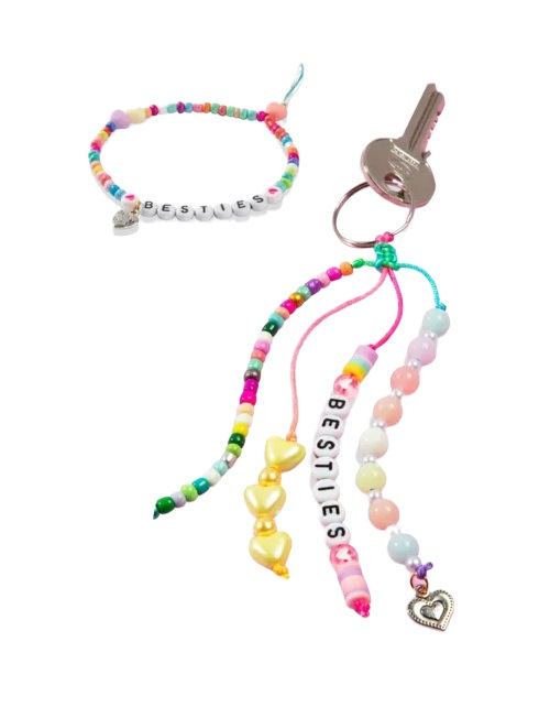 Kreativní set pomocí kterého si vyrobíš úžasný náramek a také přívěsek, který si můžeš dát například na klíče, na batoh nebo ho třeba věnovat své nejlepší kamarádce, 18x8 cm, sada obsahuje vše potřebné k výrobě - korálky, přívěsky, provázky