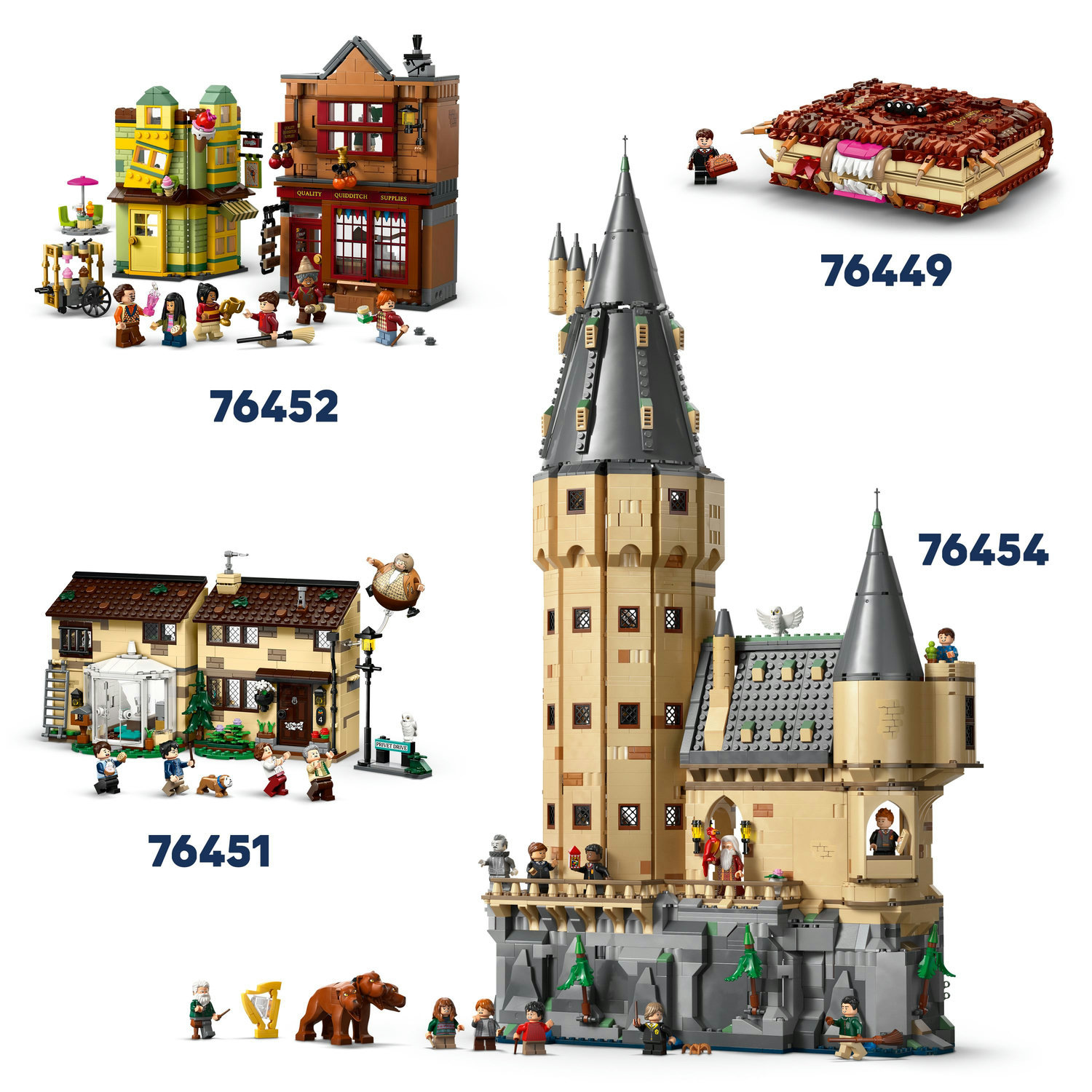 Znovu prožijte návštěvu tety Marge v Zobí ulici 4 z filmu Harry Potter a vězeň z Azkabanu s touto sběratelskou stavebnicí LEGO® Harry Potter™ (76451). Sestavitelný dům se zimní zahradou je propracovanou replikou rodinného domu Dursleyových a lze ho otevřít pro snadný přístup do interiéru. V kuchyni s jídelnou najdete odnímatelný stůl, v zadní části domu tajné dveře do Harryho starého pokoje pod schody, na okně Harryho pokoje v horním patře najdete odnímatelné mříže, se kterými si můžete připomenout scénu Harryho útěku, a nechybí spousta dalších autentických doplňků, které inspirují ke kreativnímu hraní. Tato fantastická dobrodružná stavebnice představuje kouzelný vánoční nebo narozeninový dárek pro kluky, holky a fanoušky od 8 let a obsahuje 5 minifigurek LEGO Harry Potter a figurku psa Raťafáka. Nechybí ani figurka nafouknuté tety Marge z vtipné scény, ve které na ni Harry sešle kouzlo, po kterém se nafoukne jako balón. Součástí je také menší model s nápisem „Privet Drive“ („Zobí ulice“) a pouličním osvětlením.