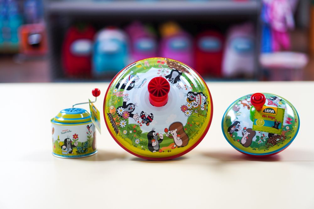 Kovová káča s motivem Krtečka o průměru 19 cm. Vhodné pro děti od 18 měsíců.