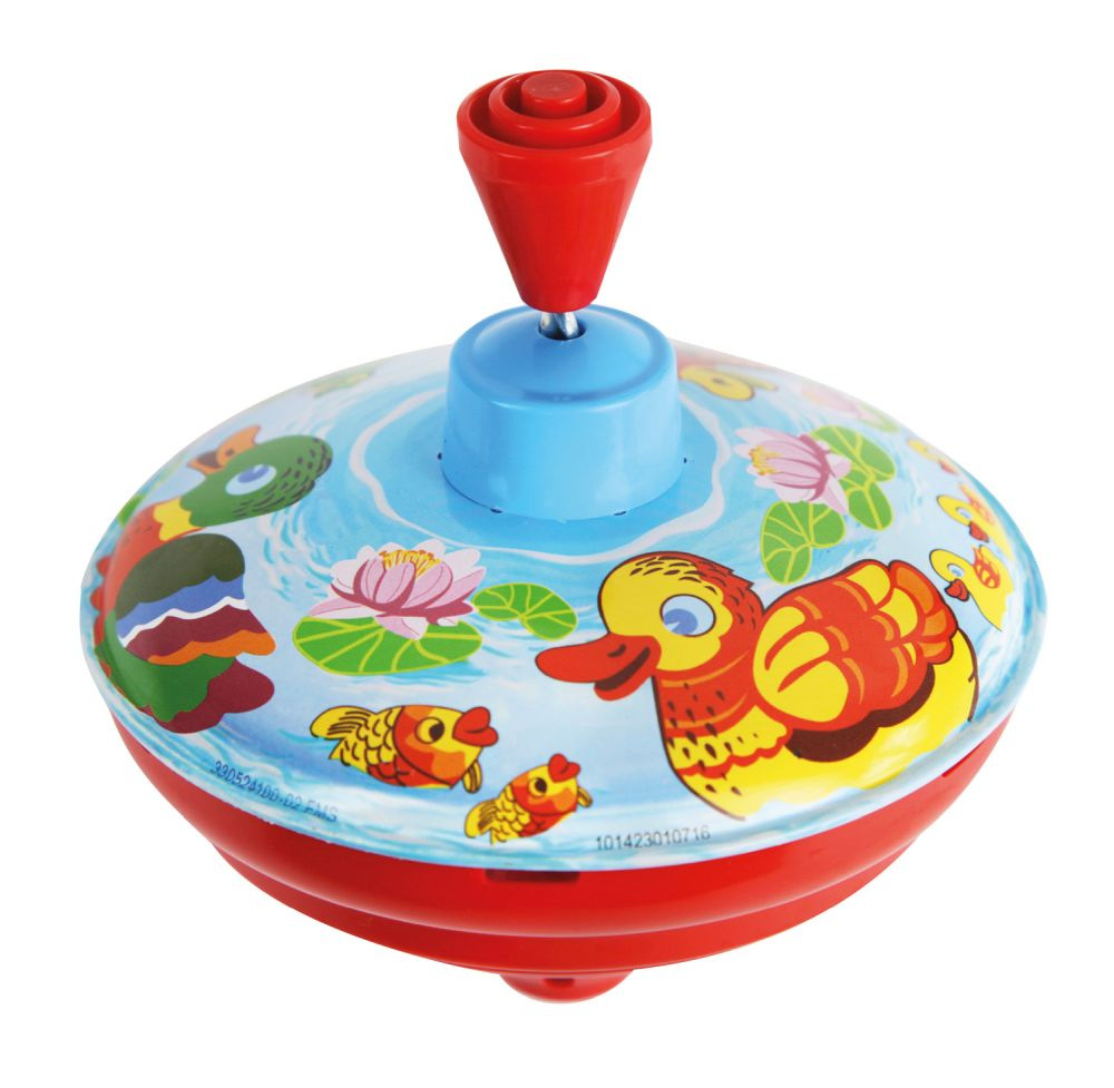 Metallkreisel mit Bauernhofmotiv, Durchmesser 16 cm. Geeignet ab 18 Monaten.