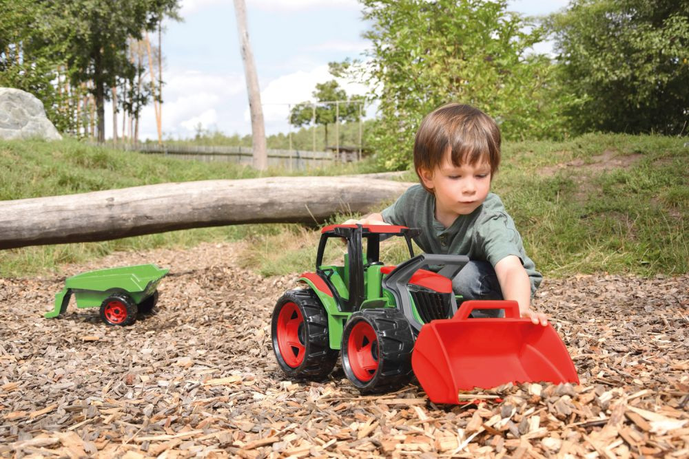 Der hochwertige Traktor mit Ladeschaufel und Anhänger wurde mit dem Anspruch moderner Optik, Funktionalität, Langlebigkeit, hochwertiger Verarbeitung und maximalem Spielwert konzipiert und gefertigt.