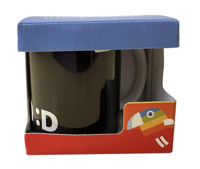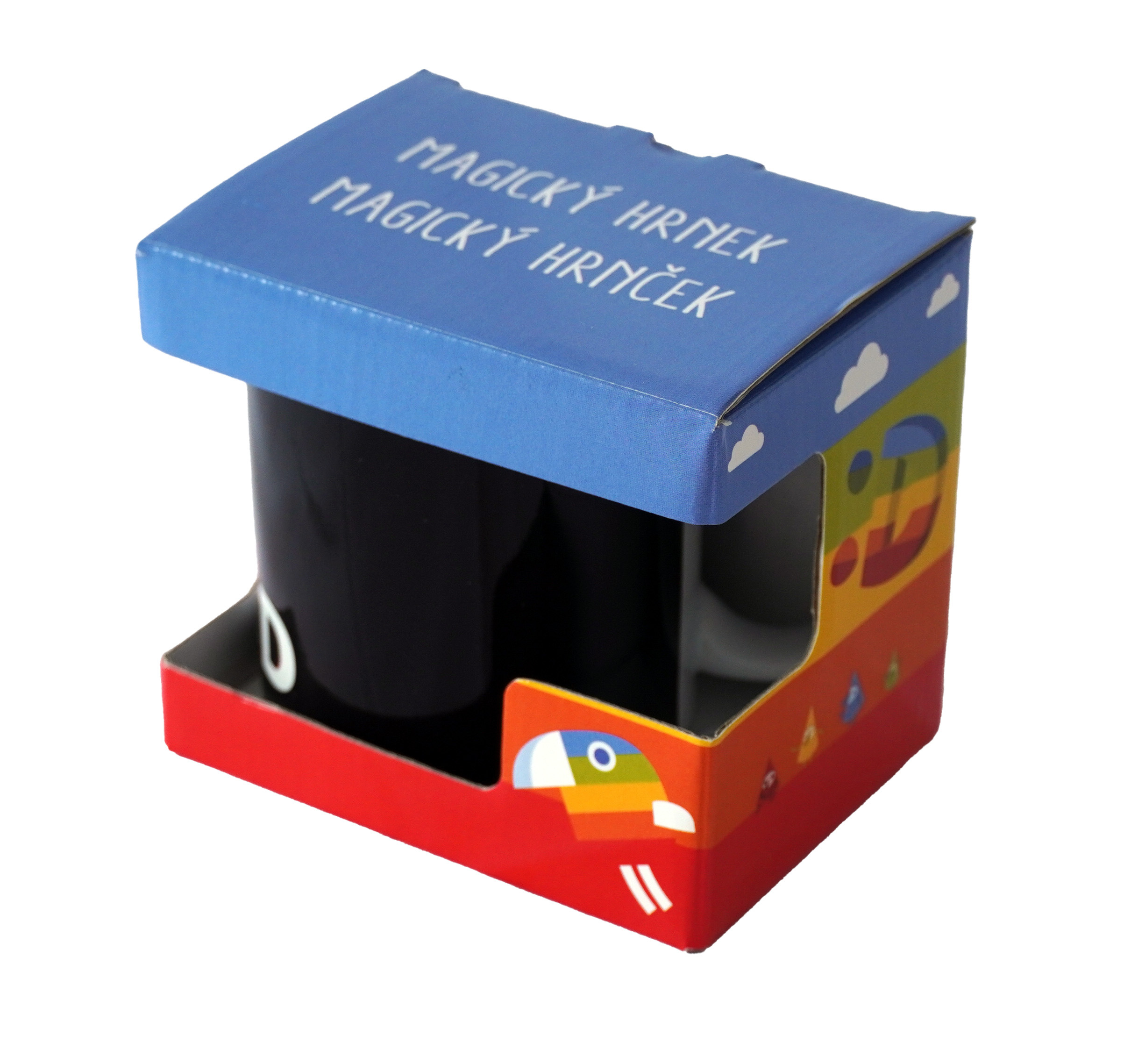 Magický hrneček s licencí Déčko České televize. Vlijte do hrnečku teplou vodu a on odkryje barevné obrázky. Po schladnutí hrnek opět ztmavne.