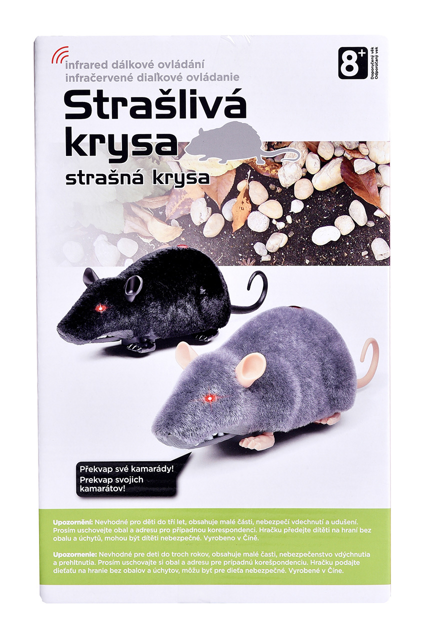 Po zapnutí plastové R/C krysy v dolní části se jí rozsvítí oči a lze ovládačem nastavit směr buď dopředu nebo zatáčí doprava.
