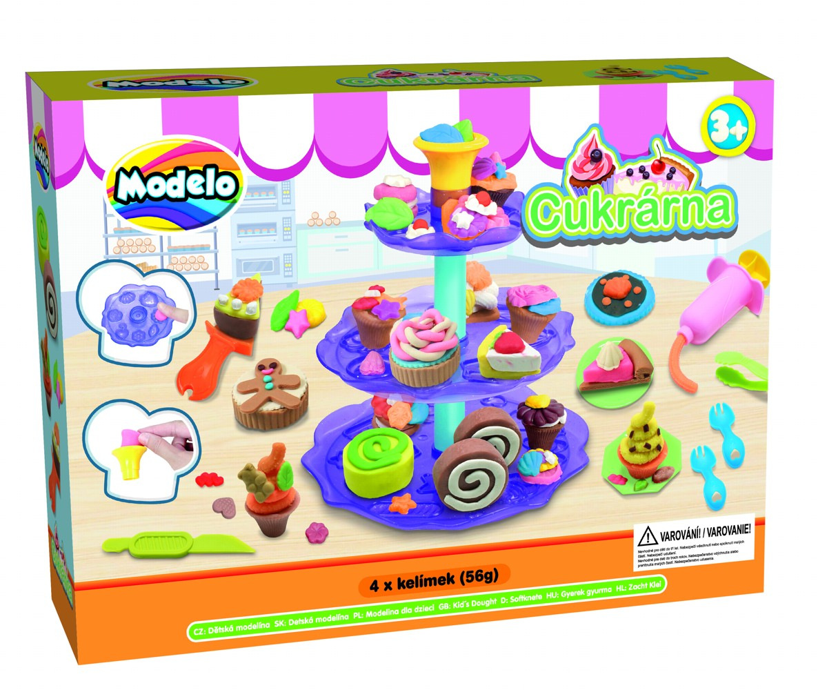 Sada modelíny, velké množství tvořítek a pečící trouba, ve které si děti upečou své dobroty. Vymodel