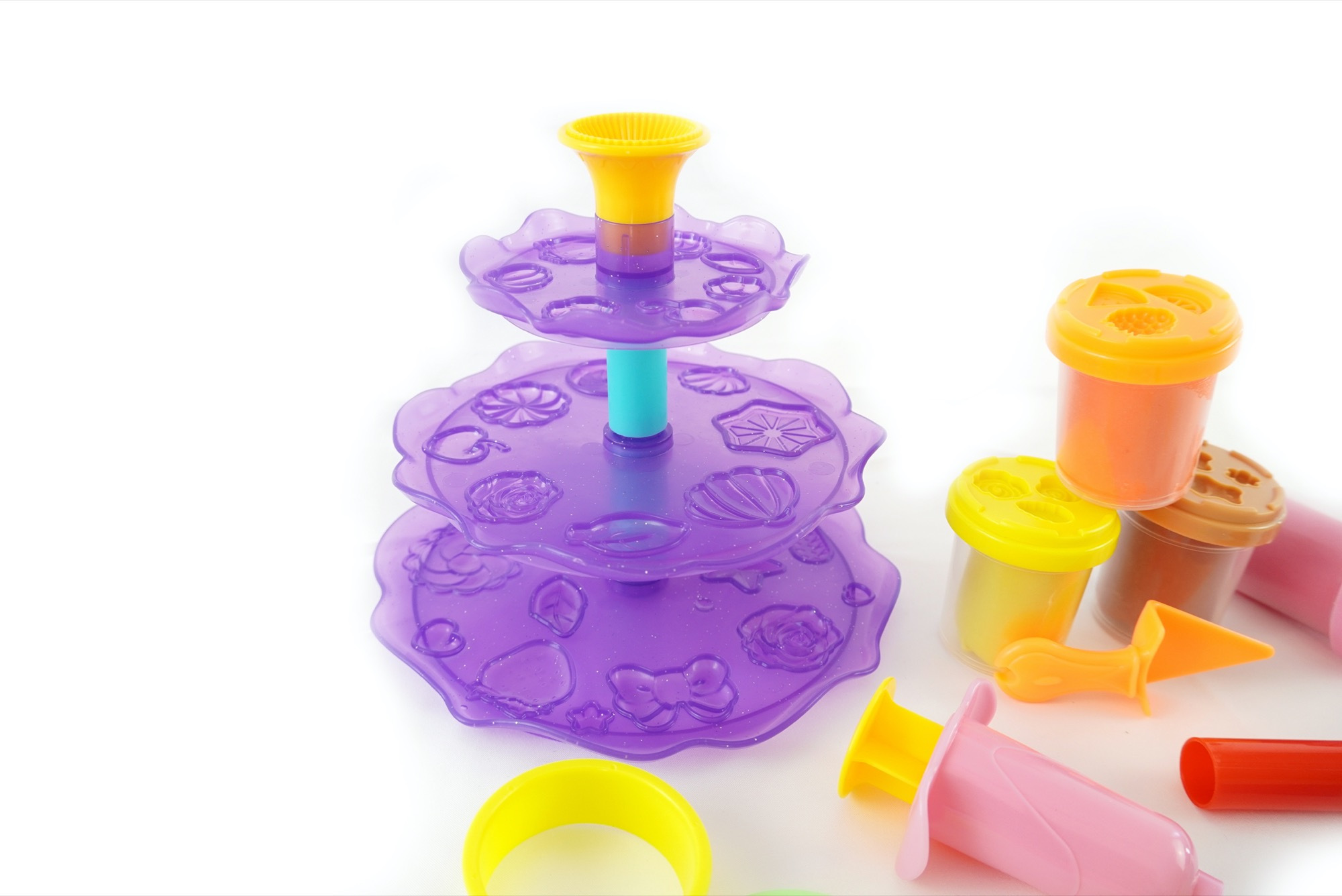 Hochwertige, gut formbare Modelliermasse, die nicht austrocknet. Das Paket enthält 4 Modelliermassen, eine Etagere und zahlreiche Modelliermassenformen.