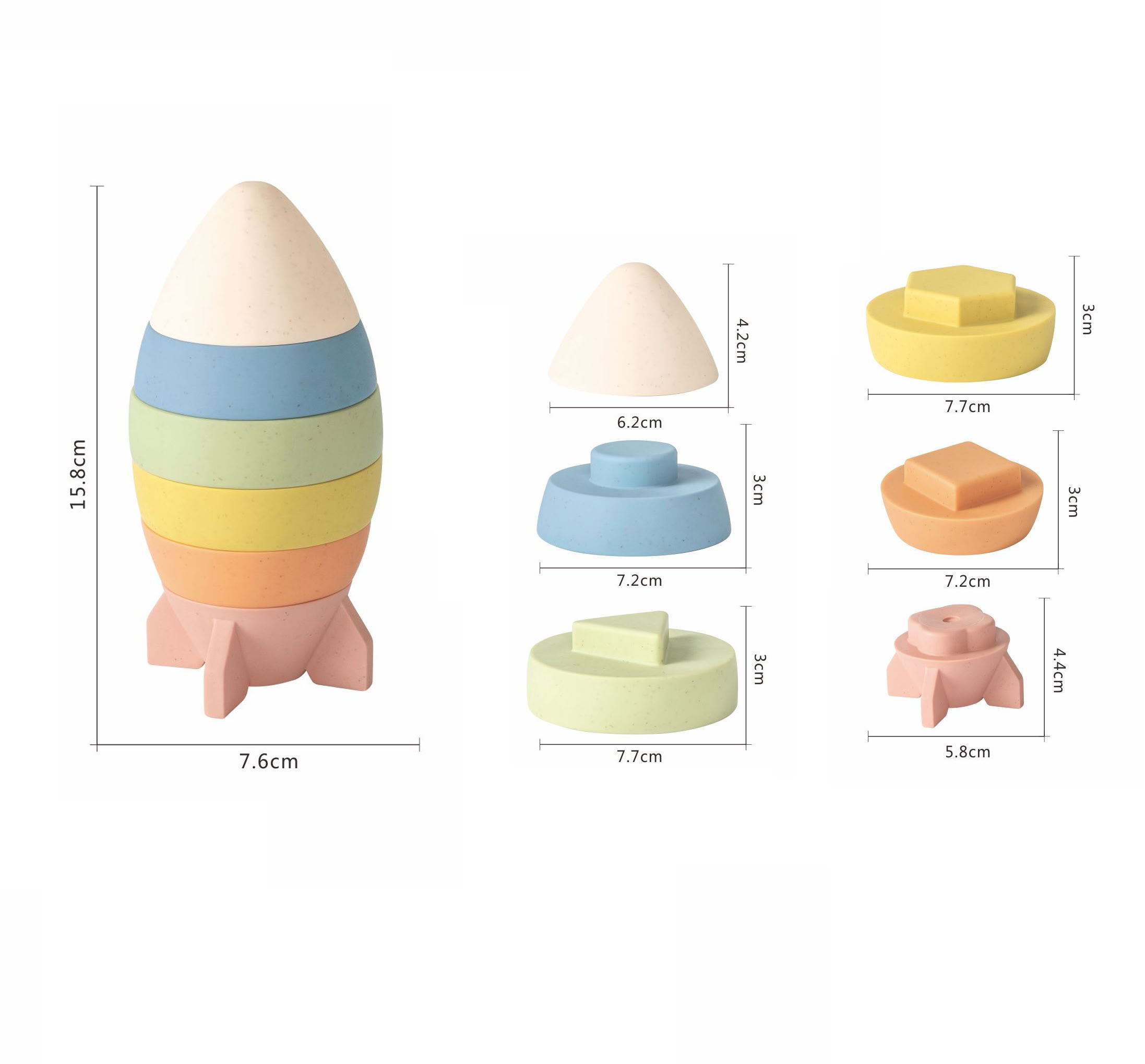 Stohovací raketa tvaryUčí rozeznávat barvy a tvary. Rozvíjí dětskou motoriku a koordinaci ruka oko.