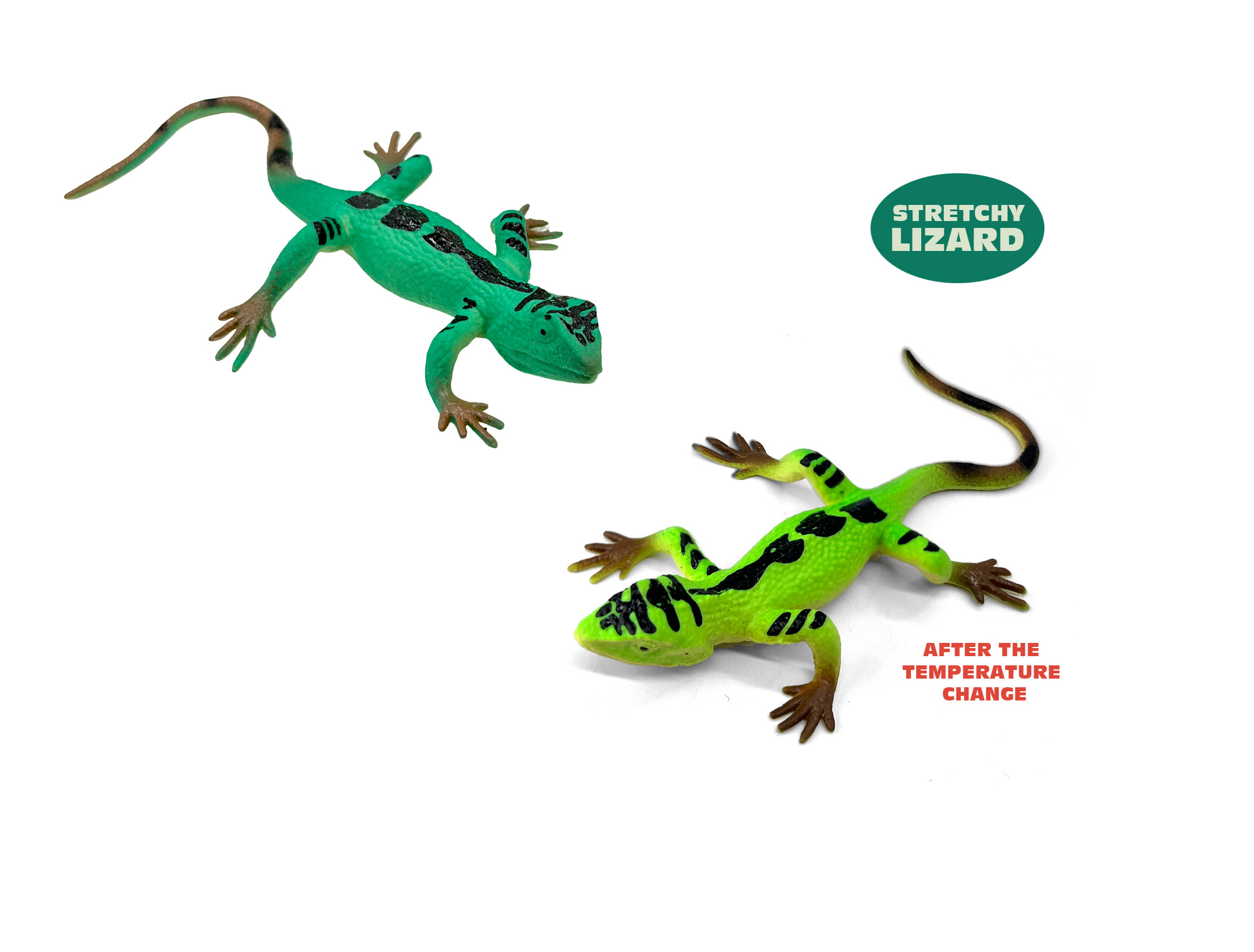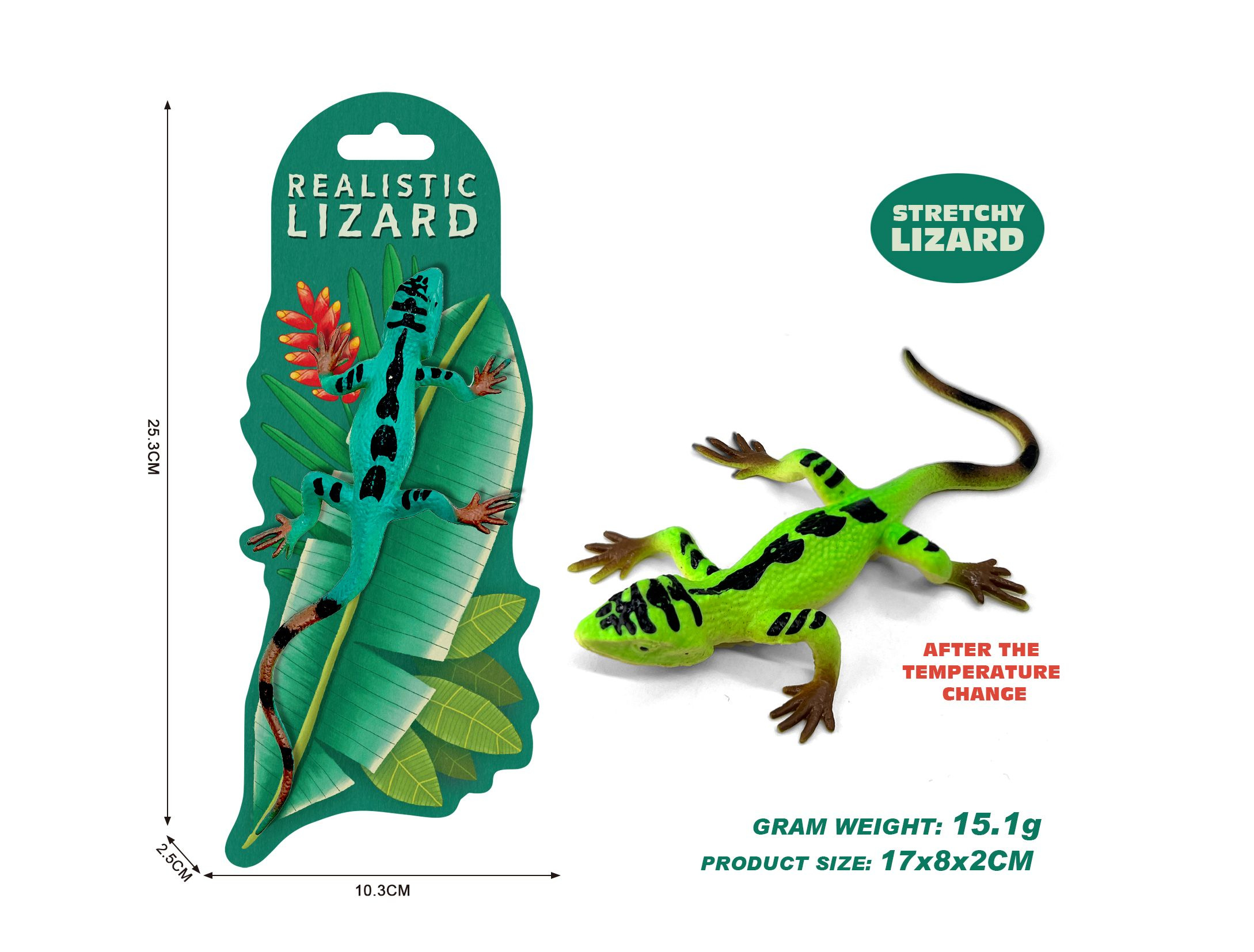 MAGANA Ještěrka měnící barvu – Mistr kamufláže Dotkni se a změň svět! Tato interaktivní ještěrka od MAGANA je víc než jen obyčejná figurka. Je vyrobena ze speciálního materiálu citlivého na teplo, který okamžitě reaguje na lidský dotek. Stačí ji pohladit, sevřít v pěsti nebo položit na teplé místo a sledovat, jak se její zbarvení plynule proměňuje. Je to perfektní hračka pro malé badatele a milovníky přírody.
