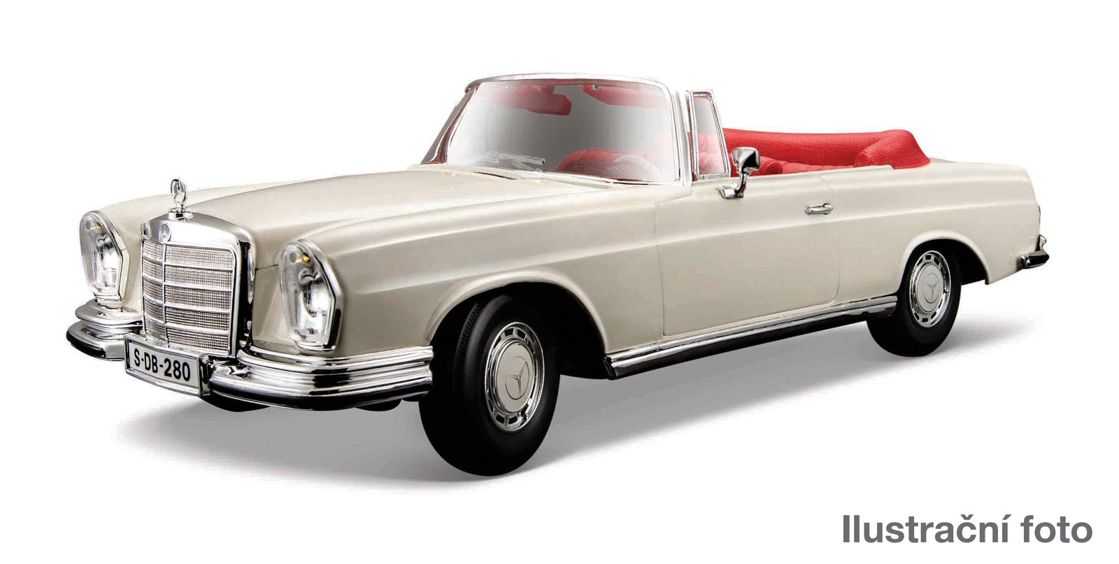 1967 Mercedes-Benz 280SE, Cabrio. Skvěle propracovaný model překvapí detailním zpracováním interiéru i exteriéru. U modelu lze otevřít dveře, víko motoru a kufru Baleno v krabičce. Rozměry balení: 33x12,4x16,4cm Věk: 3+