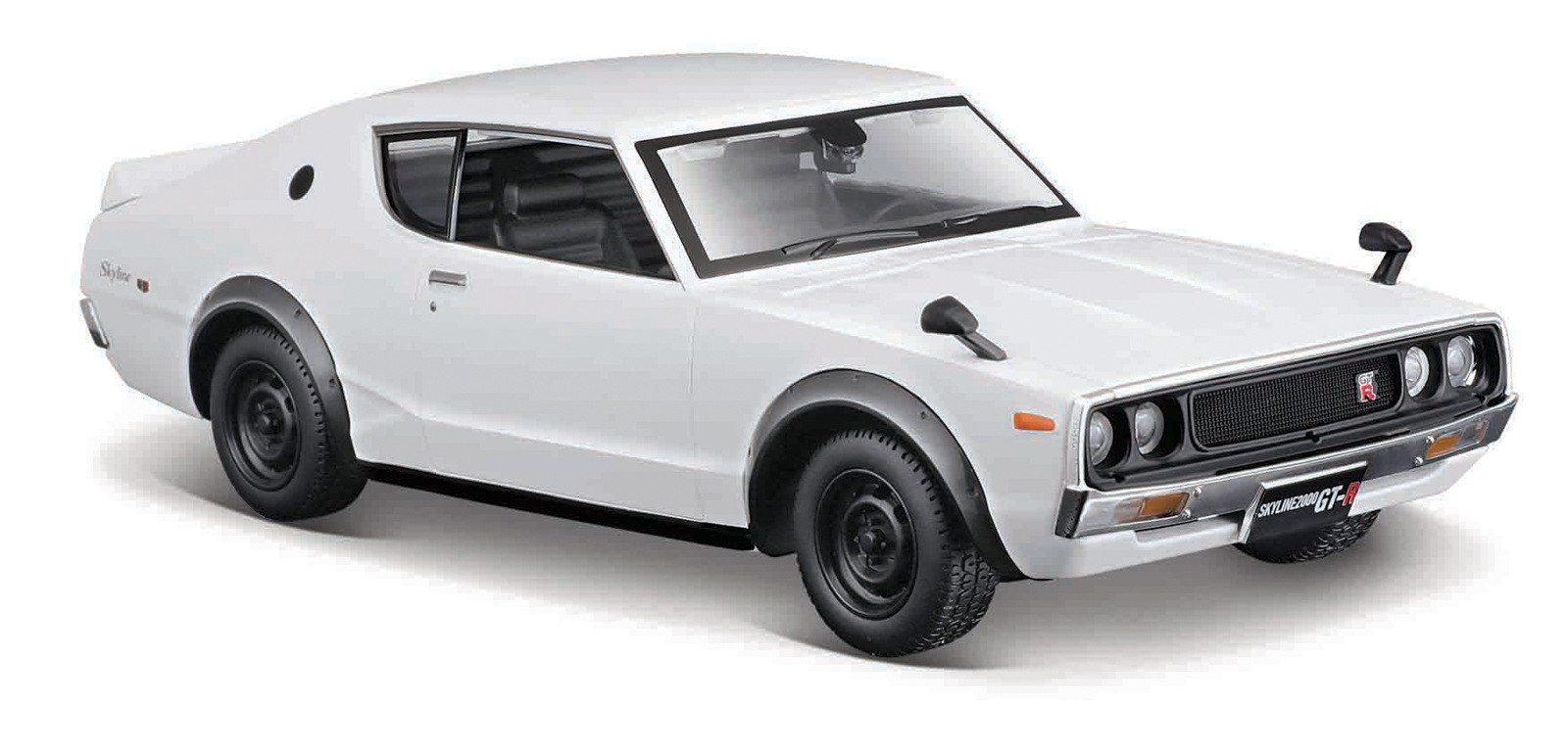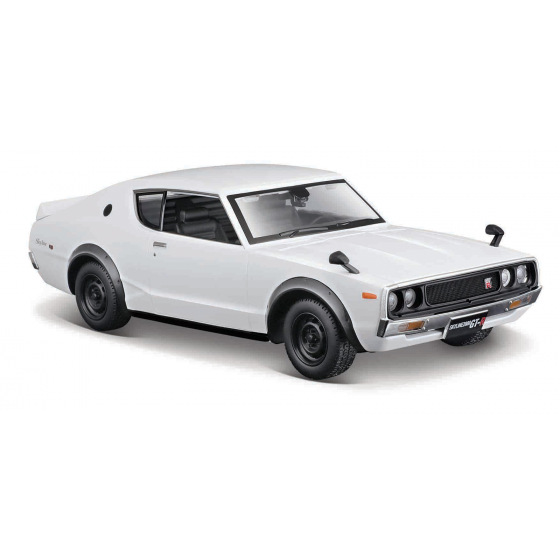 1973 Nissan Skyline 2000GT-R (KPGC110). Kovové modely Maisto v měřítku 1:24 patří mezi nejoblíbenější. Mají velmi dokonalé detailní provedení jednotlivých částí a kvalitní barevné provedení. Má otevíratelnou přední kapotu a přední dveře. Baleno v krabičce. Nevhodné pro děti do 3let. Rozměry balení: 22,8x10,5x11,4cm. Věk: 3+