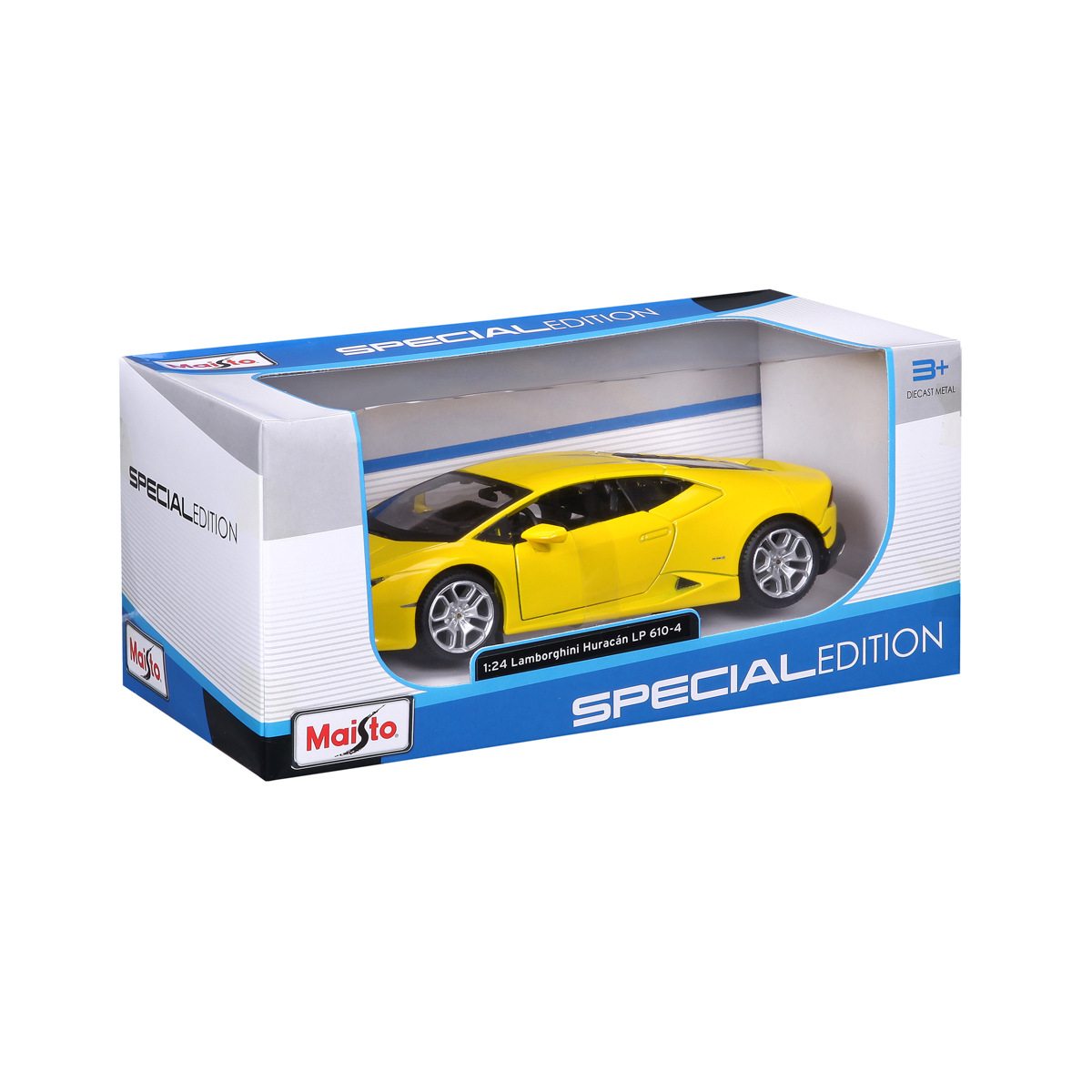 Special Edition 1:24 Lamborghini Huracán Coupé. Modely Special Edition jsou sbírkou krásného designu s vysokým důrazem na přesnost detailů. Modely jsou vyrobeny z litého kovu s plastovými detaily. Modely v měřítku 1:24 patří mezi nejoblíbenější. Většina z modelů Special Edition má otevírací dveře, kufr nebo kapotu. Baleno v krabičce. Nevhodné pro děti do 3 let. Rozměry balení: 10,5 x 23,3 x 11,4 cm. Věk 3+