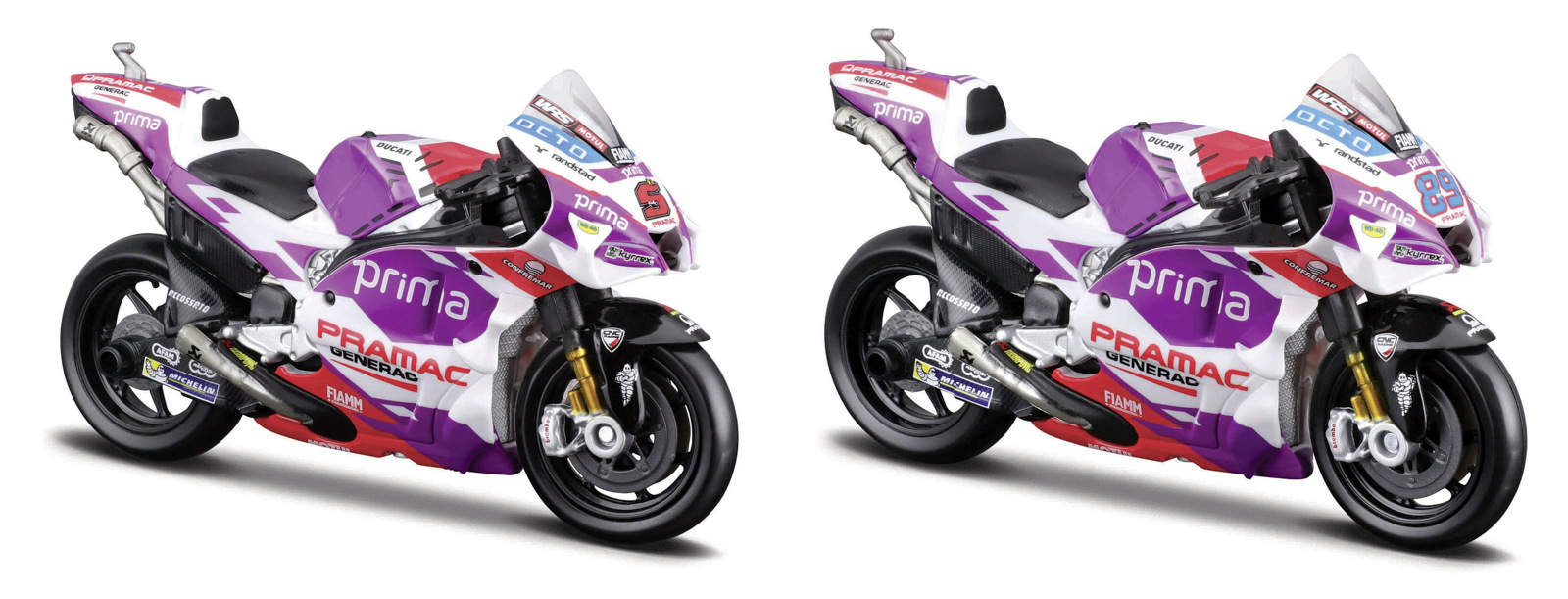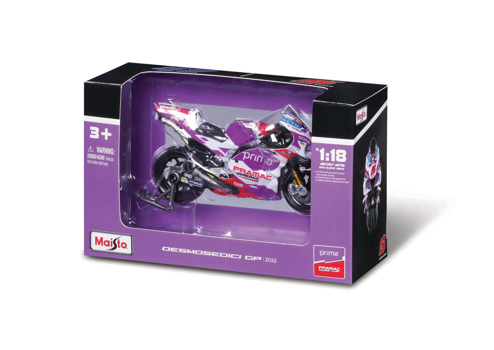 Maisto - Motorrad, Ducati Pramac Racing 2022 (#5 JOHANN ZARCO, #89 JORGE MARTIN), sortiert, 1:18