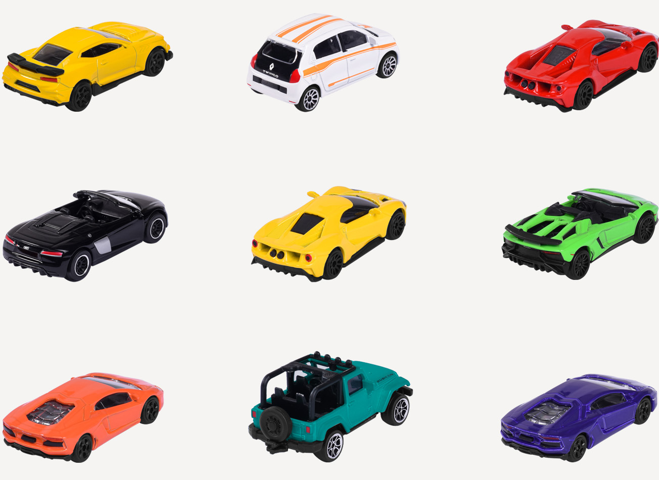 Geschenkset mit 13 Metallautos, 9 regulären Autos und 4 Autos aus der limitierten Edition 9. Wagenlänge 7,5 cm.