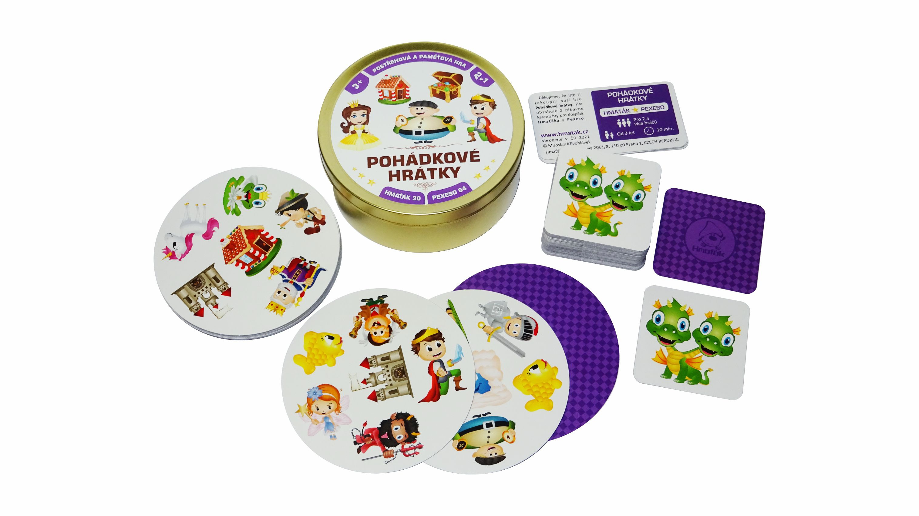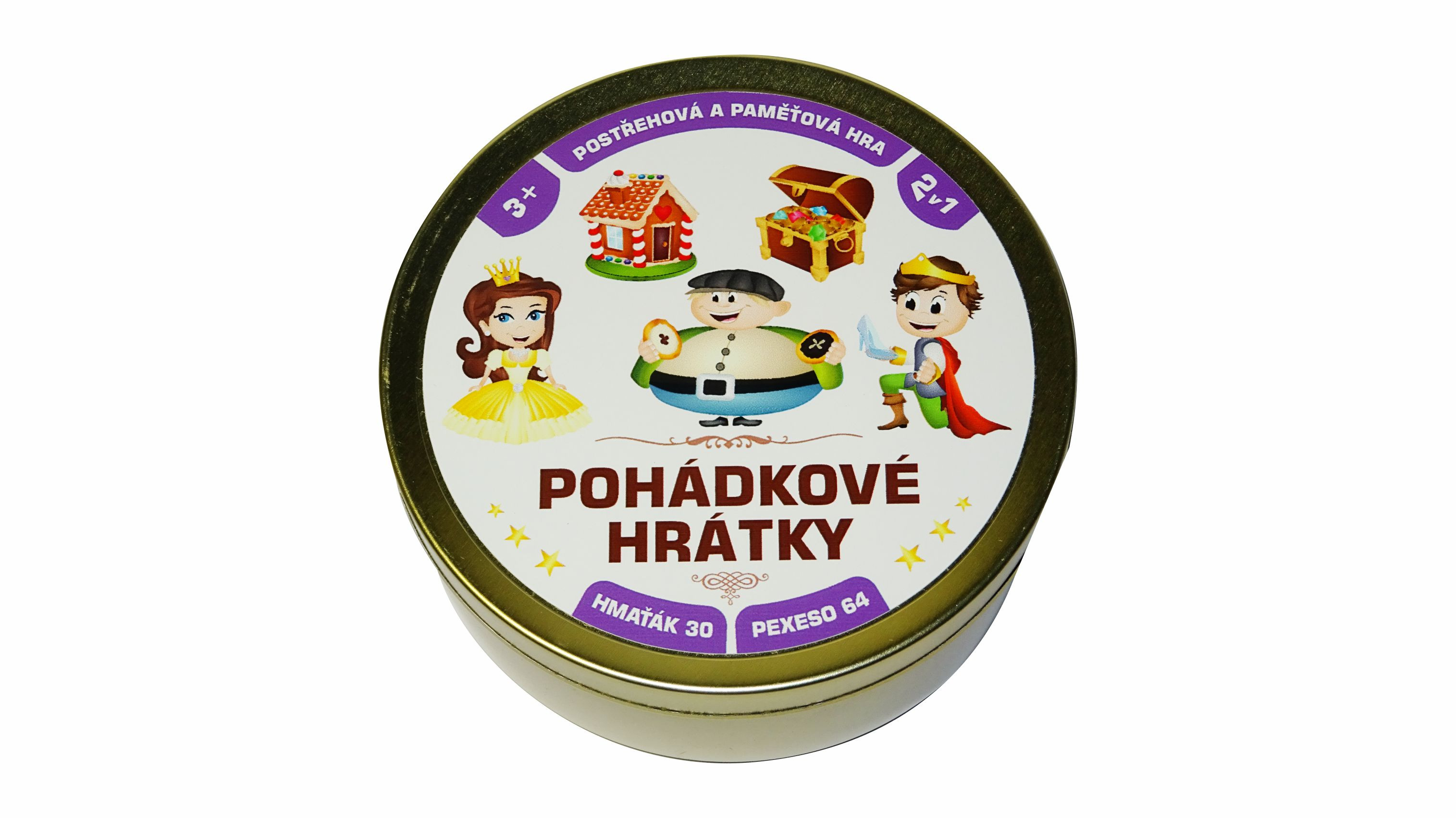 Ein lustiges Kartenspiel, verpackt in einer runden Blechdose. Dies sind Märchenspiele, die zwei lustige Kartenspiele enthalten: Hmaťáka und Pexeso. Kinder und Erwachsene verbessern spielerisch ihre Wahrnehmung und ihr Gedächtnis. Einfache Regeln und wunderschön gemalte Bilder. Packungsgröße: 10 x 4 cm. Geeignet für Kinder ab 3 Jahren.