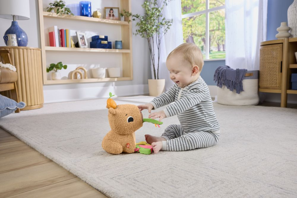 Plyšová hračka kapybara od Fisher-Price® je roztomilá, přítulná a připravená ke hře, je plná smyslových detailů, které může vaše děťátko prozkoumat. Díky pestrým barvám, texturovaným látkám a zábavným zvukům je kapybara dodávána se svými vlastními "svačinami", které jsou navrženy tak, aby při hře zapojily smysly vašeho dítěte.