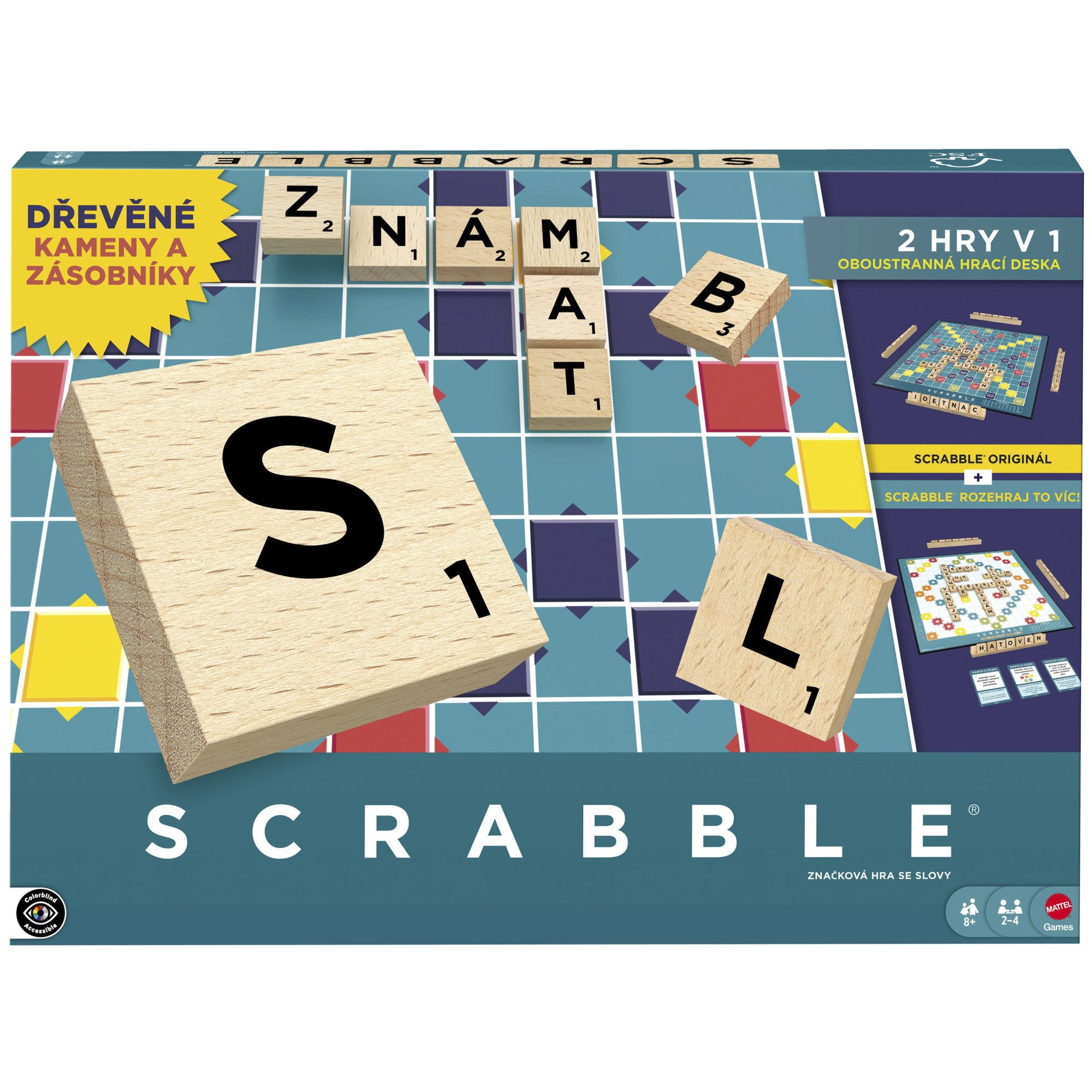 Oblíbená slovní hra Scrabble v elegantním dřevěném provedení! Tato edice obsahuje dřevěné písmenkové kameny a stojánky a kromě klasické hry přináší i druhou, zábavnou variantu. Stačí otočit herní plán a pustit se do rychlejší týmové výzvy, při které hráči společně tvoří slova podle karet s úkoly. Barvy a vzhled výrobku se mohou lišit.