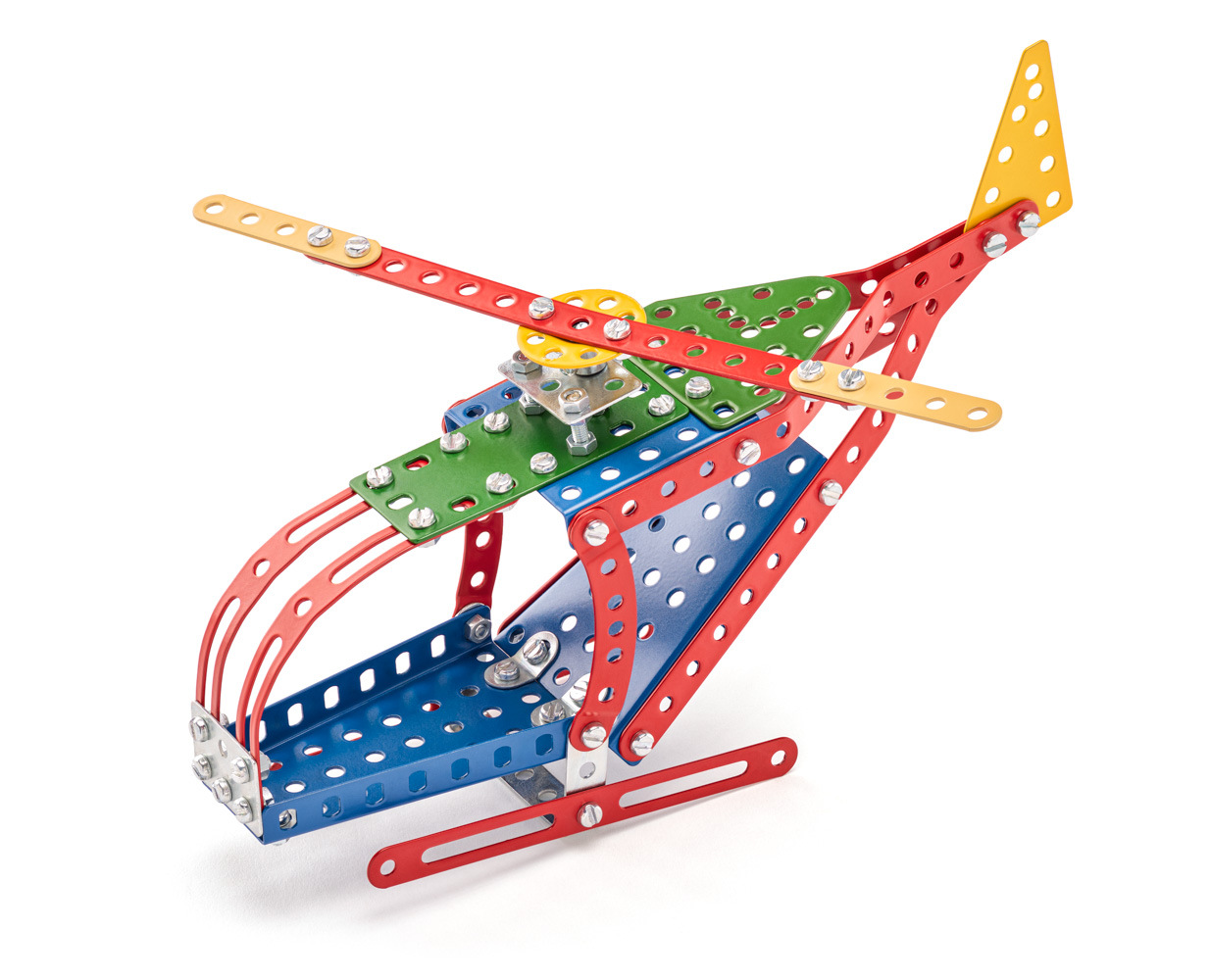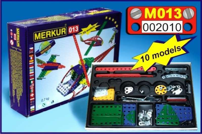 Aus dem Baukasten Merkur 013 Hubschrauber können gemäß Anleitung bis zu 10 verschiedene Modelle der Luftfahrttechnik zusammengebaut werden. Kleine Konstrukteure können auch ein Modell nach ihren eigenen Vorstellungen zusammenbauen, der Fantasie sind keine Grenzen gesetzt. Das Baukasten-Set enthält 222 Teile. Geeignet auch für Kinder, die mit Merkur beginnen. Mit den zusammengestellten Modellen kann man spielen, sie sind sehr robust. Verpackungsmaße: 26 x 18 x 5 cm. Alter: 6+. Nicht geeignet für Kinder unter 3 Jahren.