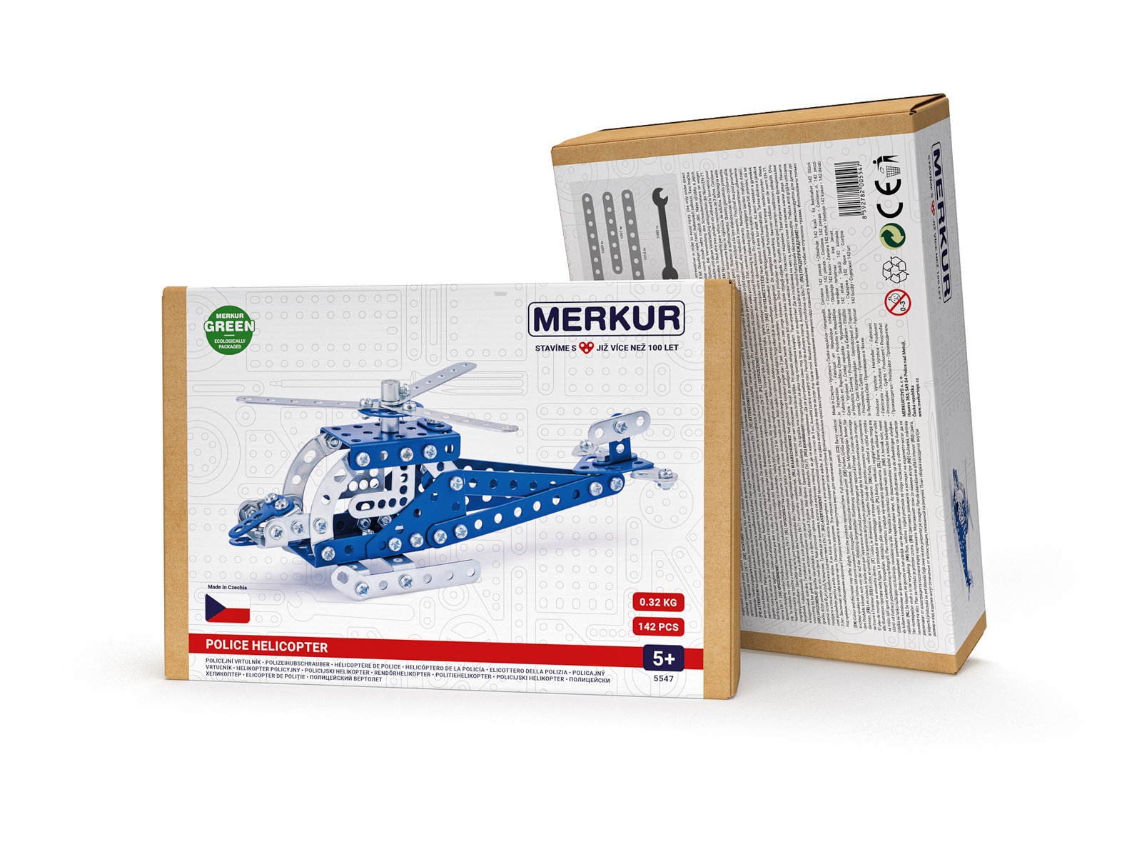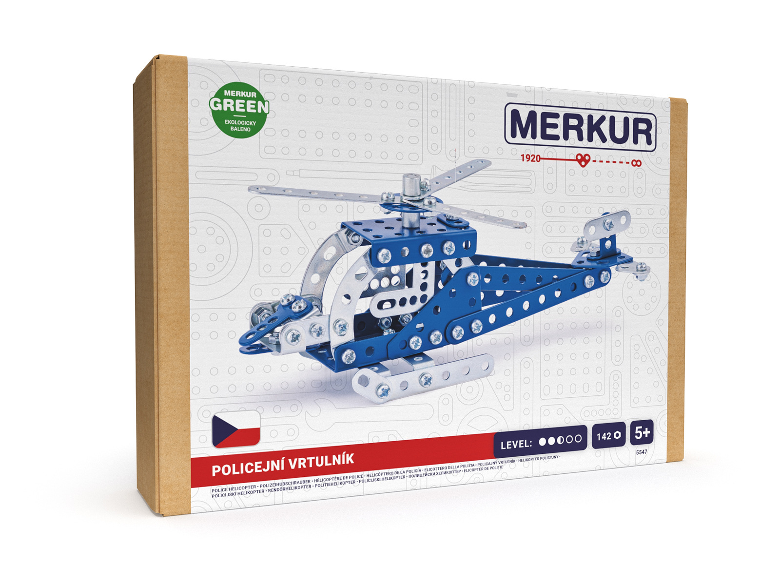 Klasická jednovrstvá stavebnice Merkur 13 – vrtulník. Stavebnice obsahuje součástky potřebné pro stavbu modelů letecké techniky. Součástí stavebnice je návodová knížka s návodem na stavbu 10 různých modelů. Tato jedinečná sada je ideálním nástrojem pro rozvoj technických dovedností a představivosti dětí. Stavebnice obsahuje kvalitní kovové díly, které se snadno spojují šroubky, což podporuje rozvoj jemné motoriky, logického myšlení a soustředění. Počet dílků: 222. Úroveň Merkur obtížnosti: 2. Barvy, velikost a vzhled výrobku se mohou lišit oproti uvedeným fotografiím. Baleno v krabičce. Rozměry balení: 18 x 26 x 5 cm. Nevhodné pro děti mladší 3 let. Věk: 5+