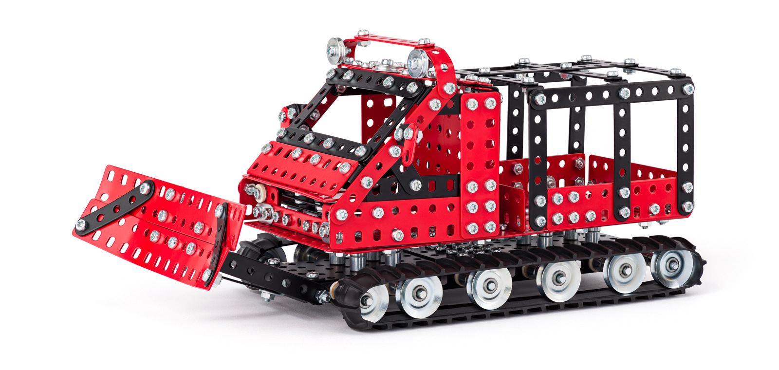 Jedná se o exkluzivní stavebnici, která je replikou podobných stavebnic ze začátku minulého století. Veškeré součástky jsou z tradičních materiálů a v barvách jako je zinek, patina či bezbarvý lak. Neobsahuje klasický návod, pouze knihu předloh. Tato jedinečná sada je ideálním nástrojem pro rozvoj technických dovedností a představivosti dětí. Stavebnice obsahuje kvalitní kovové díly, které se snadno spojují šroubky, což podporuje rozvoj jemné motoriky, logického myšlení a soustředění. Počet dílků: 929. Úroveň Merkur obtížnosti: 3. Barvy, velikost a vzhled výrobku se mohou lišit oproti uvedeným fotografiím. Baleno v krabičce. Rozměry balení: 29 x 38 x 5 cm. Nevhodné pro děti mladší 3 let. Věk: 6+
