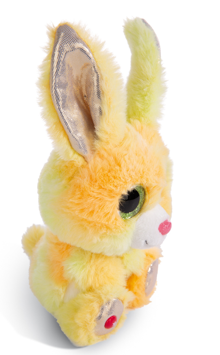 Glubschis Plyšový Králíček Mirabelle vás okouzlí svým hebkým kožíškem, zelenýma třpytivýma očima, roztomilým růžovým nosíkem a okouzlujícím třpytivým materiálem v uších a na tlapkách. V kolekci GREEN od Nici se téměř výhradně používají plyšové a výplňové materiály vyrobené z recyklovaných materiálů. Rozměr hračky: 15 x 11 x 9 cm. Rozměr balení: 16 x 11 x 11 cm. Věk 0 +