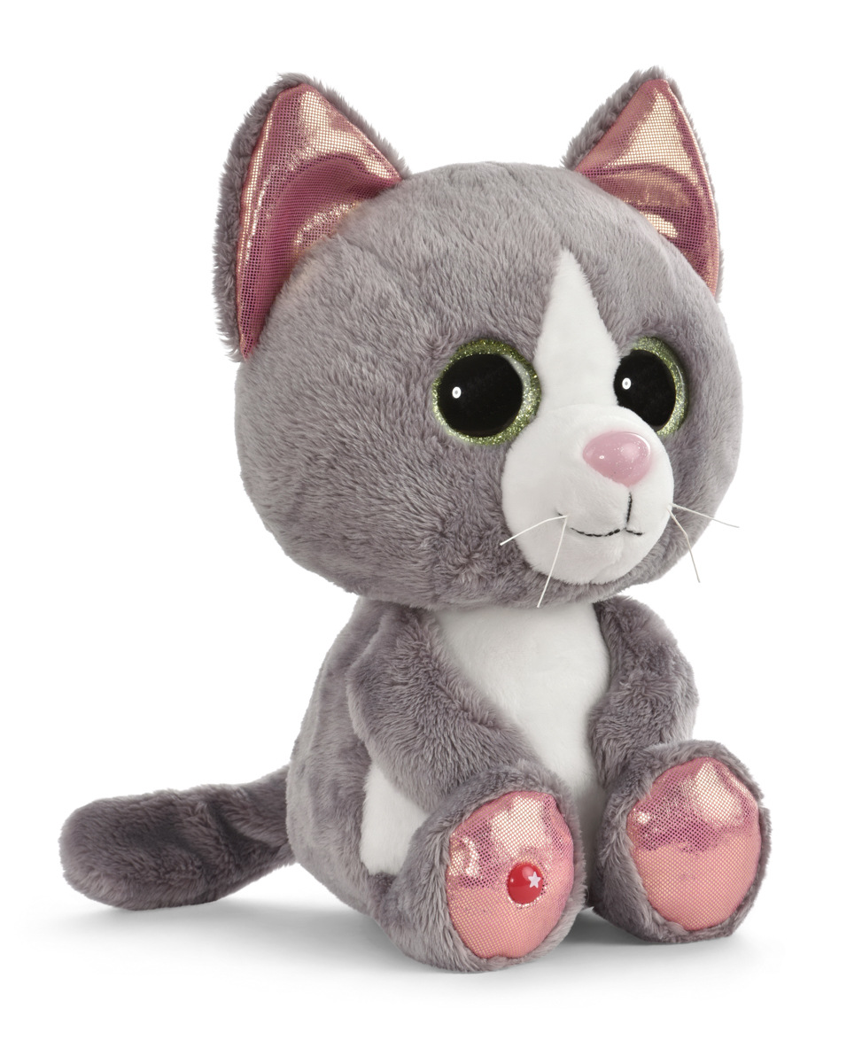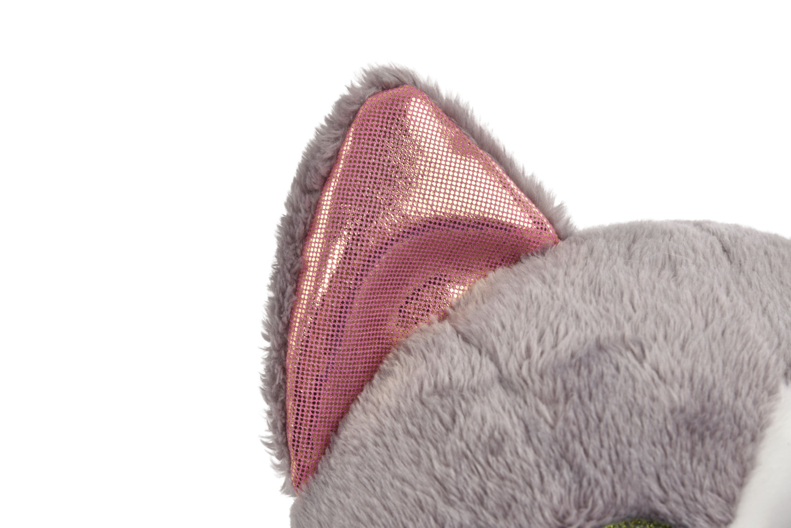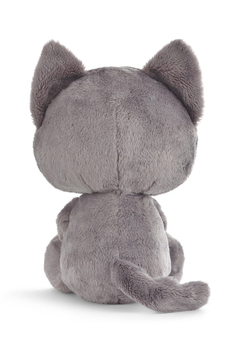 Sladká šedá kočka s třpytivýma očima a růžovýma lesklýma ušima a tlapkama. V sérii GREEN od Nici se téměř výhradně používají plyšové a výplňové materiály vyrobené z recyklovaných materiálů. Výška: 25cm. Věk: 0+
