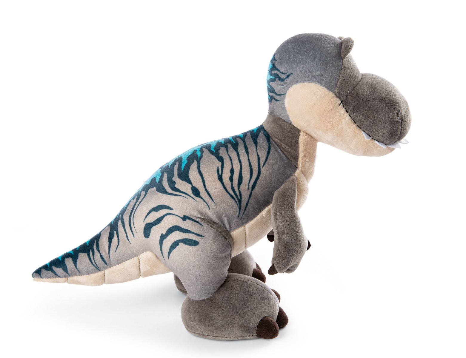Roztomilý plyšový dinosaurus Tony-Rex s modrými pruhy na zádech. Roztomilá vyšívaná očka a hebký kožíšek z něj dělají bezva kamaráda. V sérii GREEN od Nici se téměř výhradně používají plyšové a výplňové materiály vyrobené z recyklovaných materiálů. Výška: 31cm. Věk: 0+