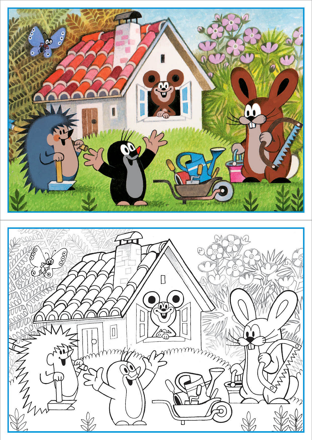 Omalovánky pro děti s obrázky nestárnoucího a dětmi milovaného Krtečka Zdeňka Milera. Na 16 stranách klasických omalovánek je jeden obrázek již vybarvený a druhý k vybarvení si mohou děti vymalovat s obrázky Krtečka.