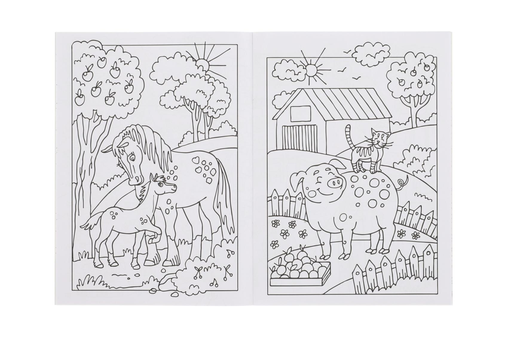 Roztomilé omalovánky Zvířata na farmě přenesou děti na venkov plný veselých zvířátek. Uvnitř najdou obrázky kraviček, prasátek, slepiček, koníků, ovcí a dalších obyvatel farmy. Každá stránka nabízí jednoduchou, přehlednou a hravou ilustraci ideální k vybarvení.