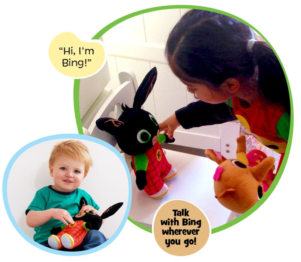 Plyšový mluvící BING populární pohádky králíček Bing. Je to skvělý společník, umí více než 15 frází. Když stiskneš knoflík/bříško uslyšíš jak Bing mluví. Je vyrobený z měkoučkého mazlivého vysoce kvalitního materiálu. Součástí balení jsou 3AA baterie, které se dají vyměnit.