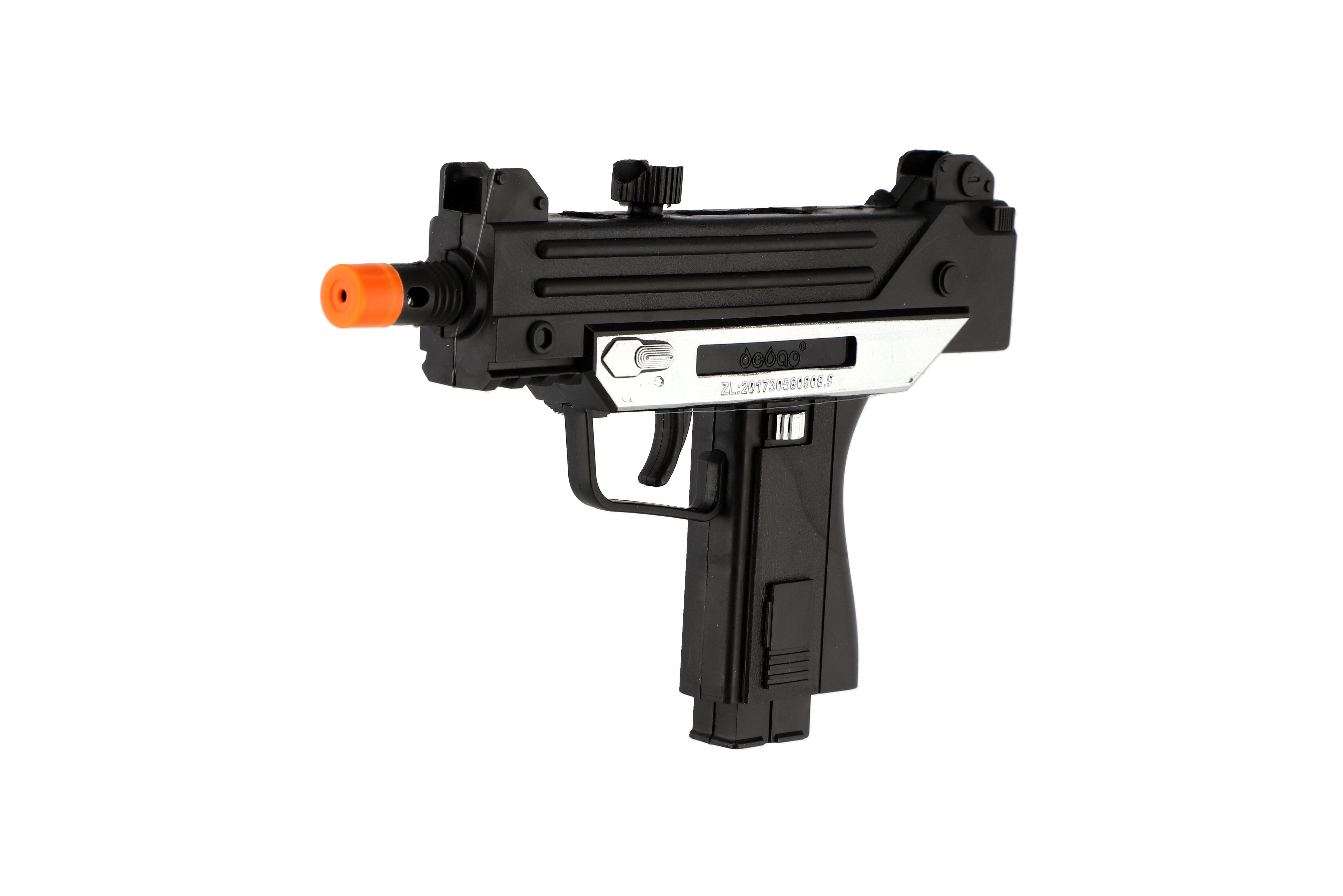 Pistole samopal je reálně vypadající zbraň z plastu pro děti, samopal se zajisté bude líbit všem klukům, kteří mají rádi zbraně. Po vložení baterií vydává zvuky a svítí. Rozměry samopalu: 17,5 cm Vhodné pro děti od 3 let