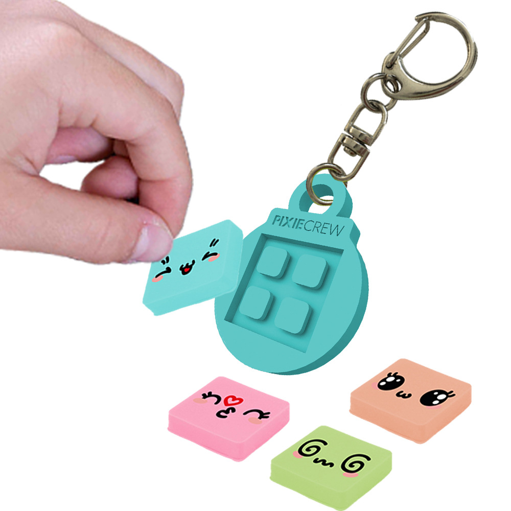 Unikátní silikonový PIXIE CREW creative panelTM ve tvaru kolečka může být důvtipně použitý jako klíčenka či přívěšek na cokoli budete chtít. Průměr kolečka je 25 mm a tloušťka je 5 mm. Na přední straně jsou 4 body vhodné k použití obrázkového multipixelu (pixel o vel. 2x2 body), který můžete neustále obměňovat a tím si vytvářet přívěšek na každý den jiný. Nerezový řetízek s karabinou je 45 mm dlouhý. Celkově pak přívěšek je dlouhý 70 mm. Ke každému přívěšku přikládáme 4 multipixely s obrázky zdarma. Rozměry balení: 15 x 7,5 x 1 cm. Věk: 5+