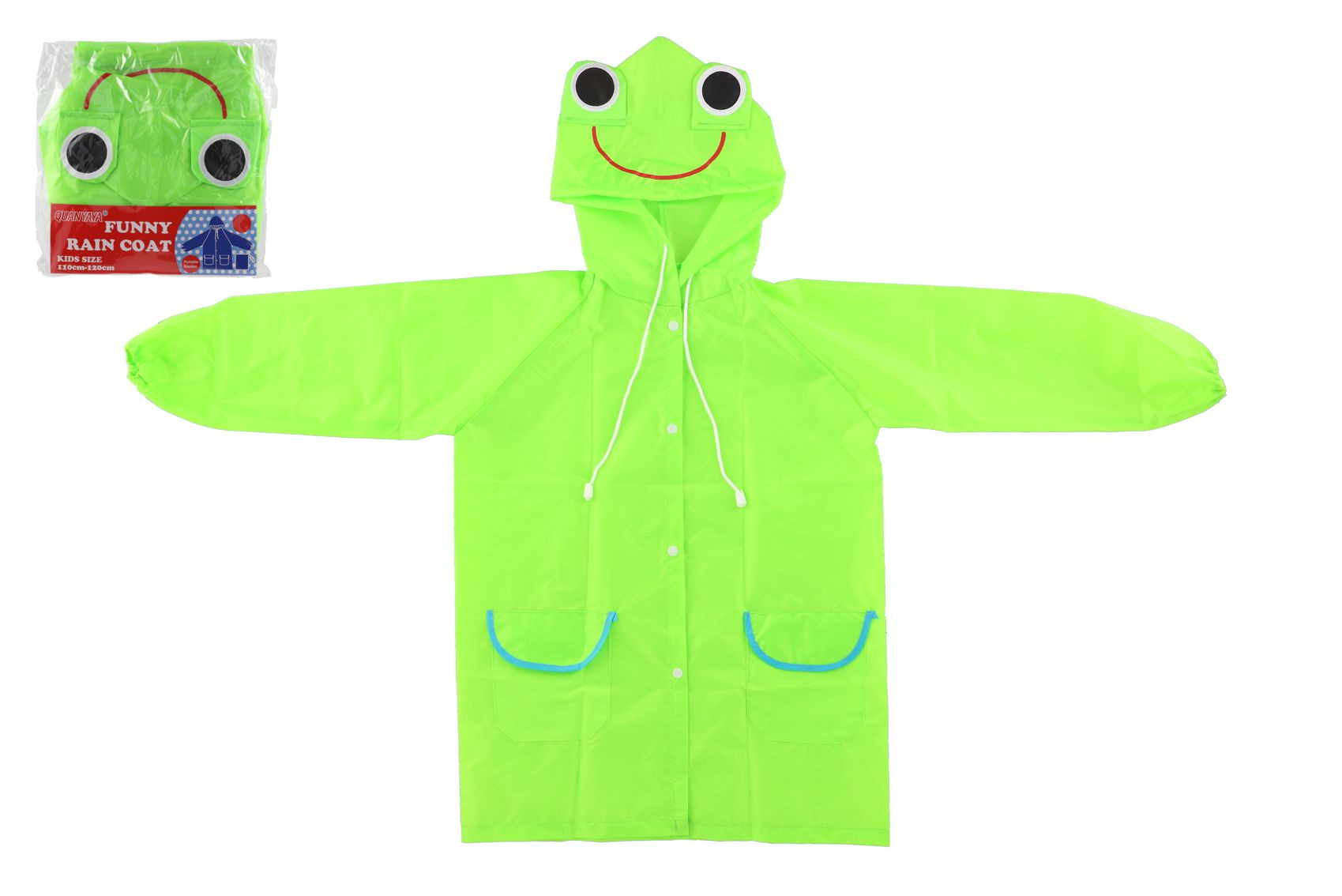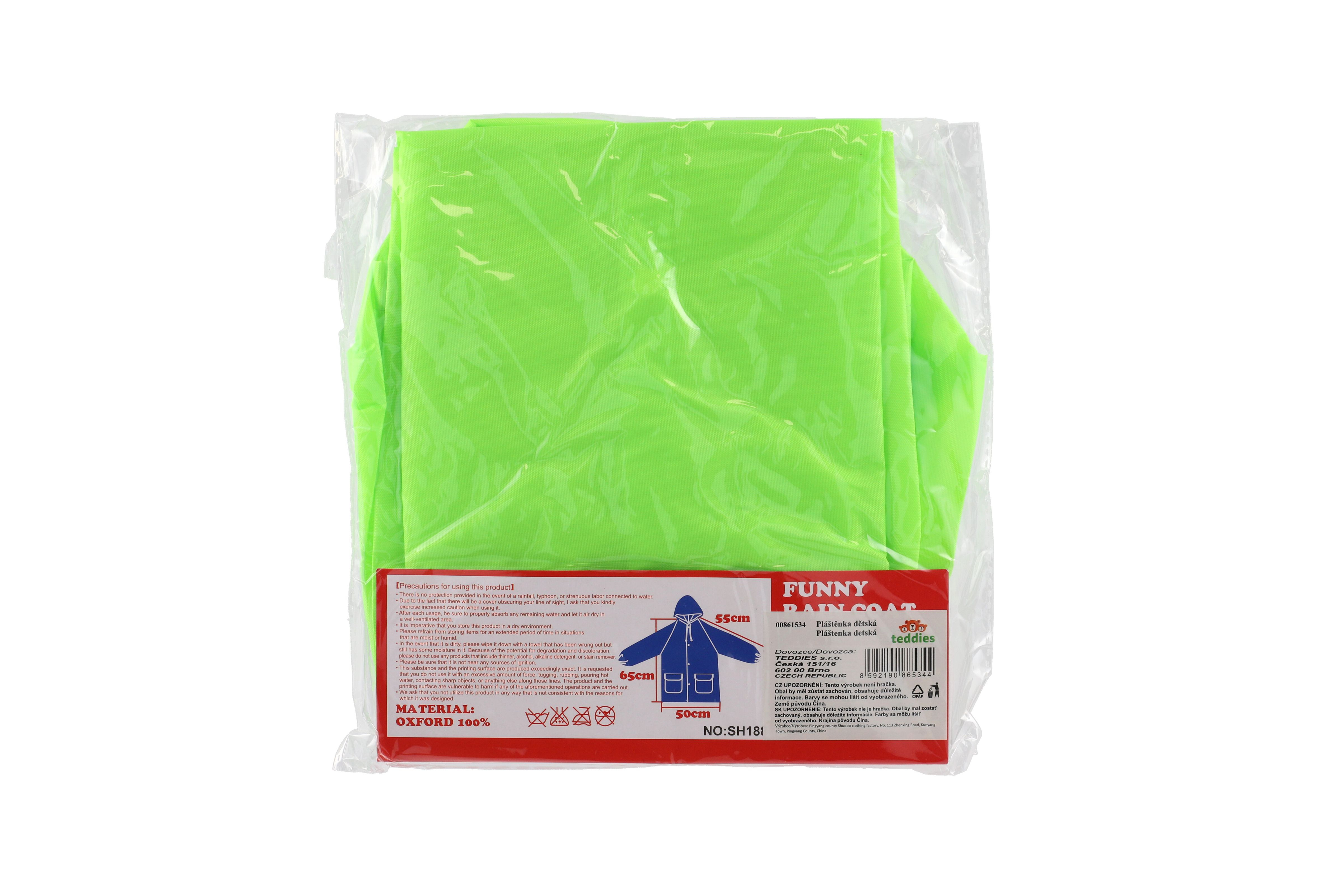 Teddies Pláštěnka dětská žába velikost 110-120cm zelená v sáčku 23x25cm