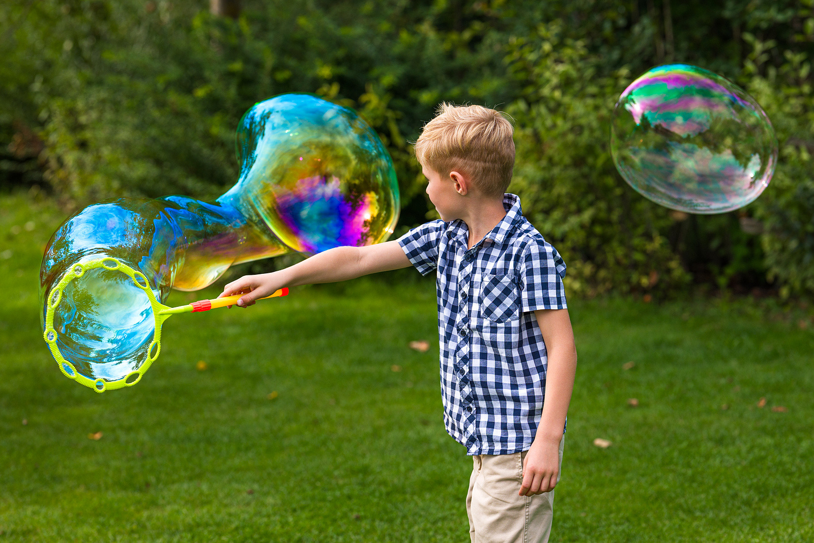 V balení najdete dvě obří bublinkové hůlky, takže si zábavu může užít více hráčů současně. Praktická miska usnadňuje namáčení a 300 ml bublinkového roztoku umožní začít ihned po rozbalení.