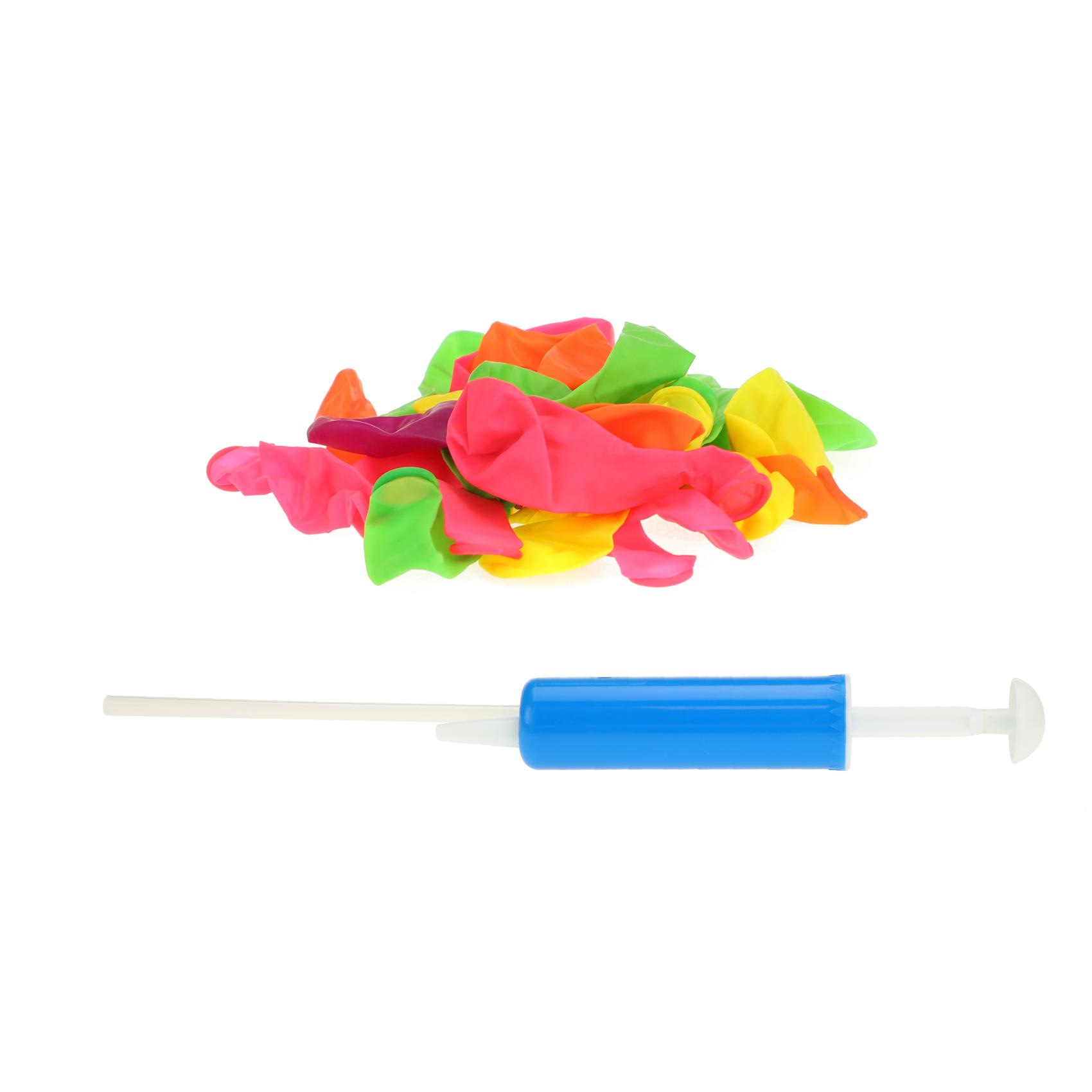 Pumpa na vodní bomby usnadní a urychlí napouštění bomb a vodní válka tak bude mnohem zábavnější. Balení obsahuje 100 ks barevných bomb. Velikost pumpy je 17 cm. Vhodné pro děti od 8 let