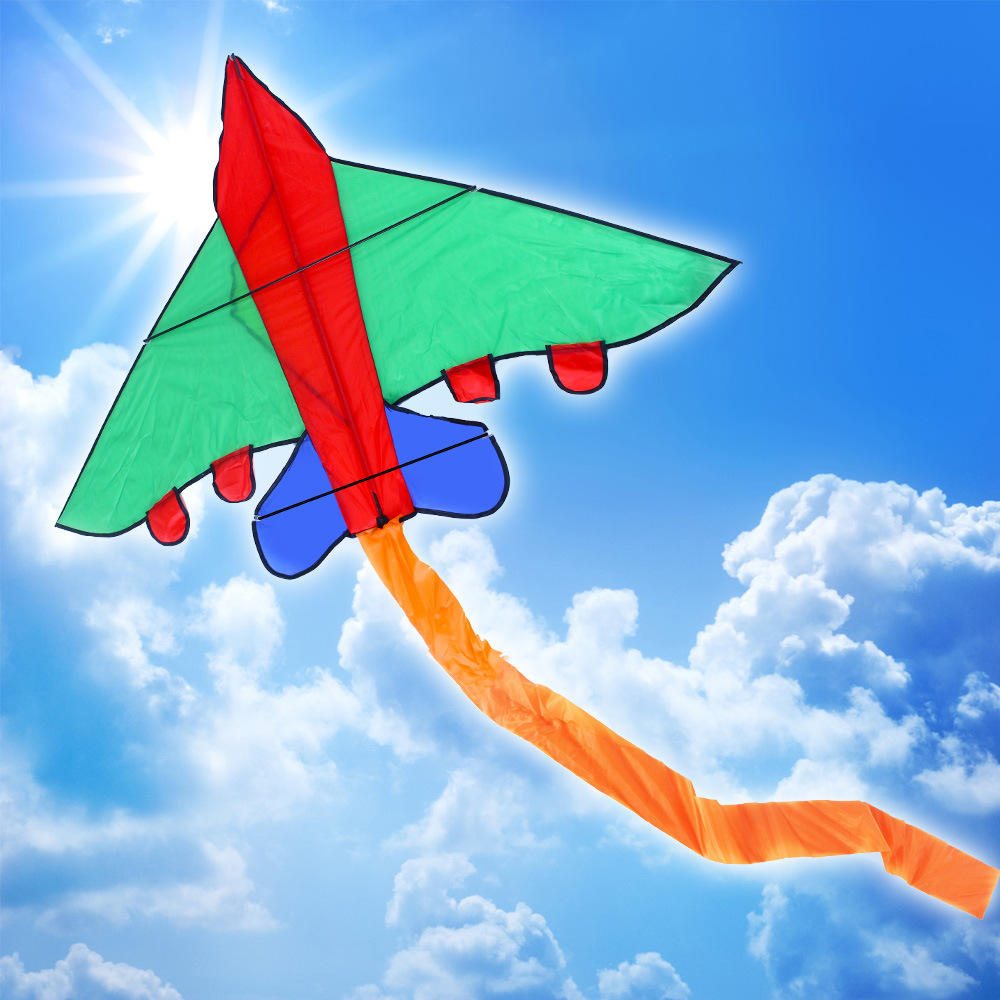 Ein bunter Nylon-Drachen im Flugzeugstil ist das ideale Accessoire für herbstlichen Spaß! Die Abmessungen des Drachens sind 140 x 98 cm. Die Verpackung enthält einen Drachen, eine Konstruktion und eine Führungsleine mit Griff.