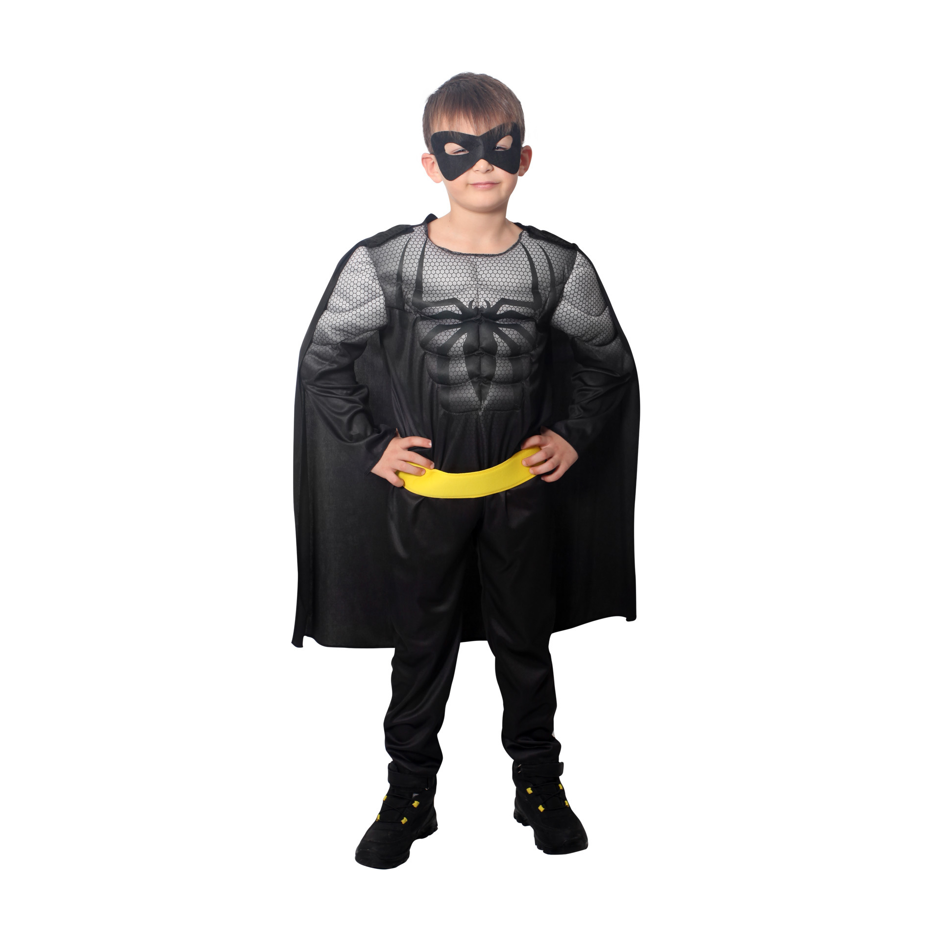 Úchvatný kostým ve stylu pavoučího bojovníka nesmí ve tvé karnevalové sbírce chybět! Kostým ve velikosti M je určen pro chlapečky ve věkovém rozmezí 6-8 let (117-128 cm). Balení obsahuje černo-šedý overal se znakem pavouka na hrudi a je doplněn černým odnímatelným pláštěm a látkovou škraboškou.