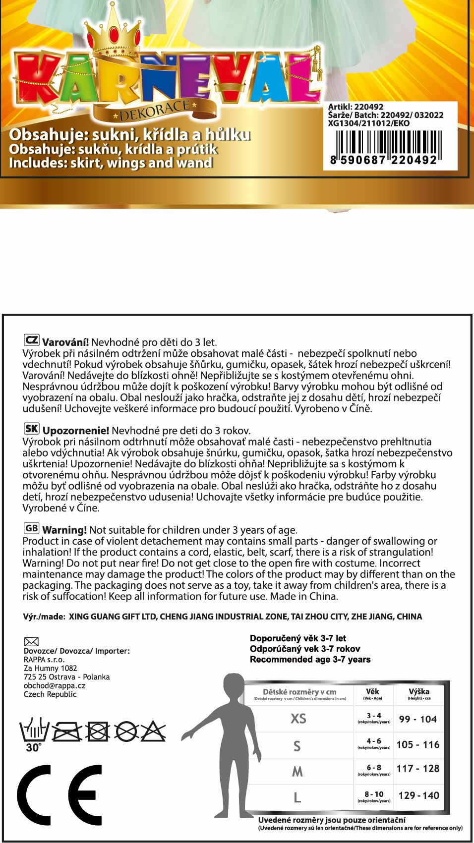 Beschreibung Rappa Kinderkostüm Tutu Rock Blumenfee Tinkerbell mit Zauberstab und Flügeln e-Verpackung