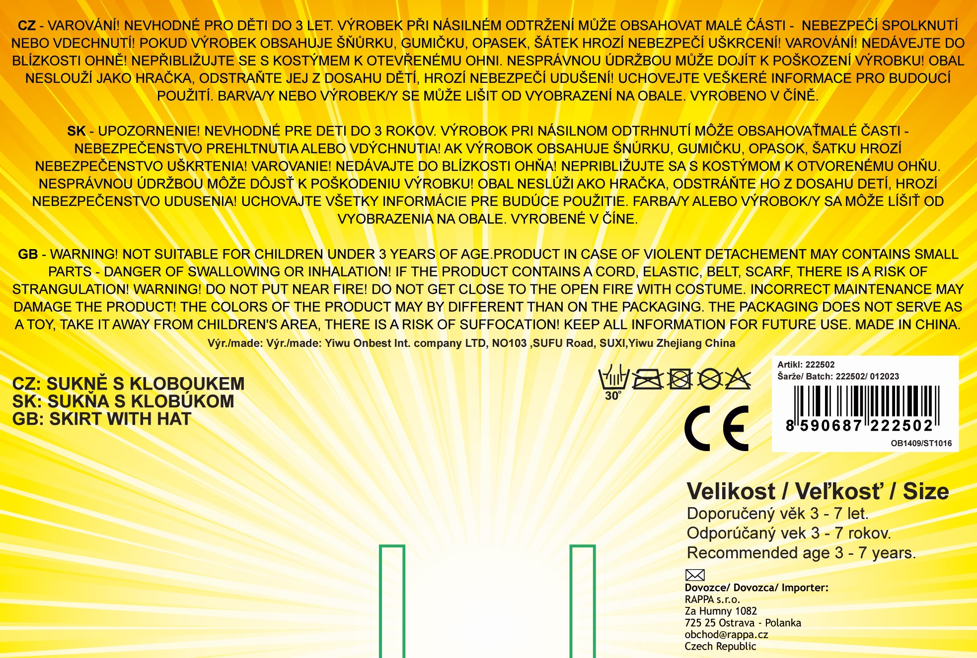 Beschreibung Rappa Kinderkostüm Tutu-Rock Hexe mit Hut