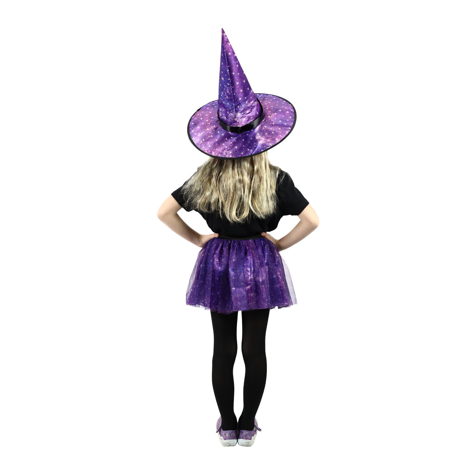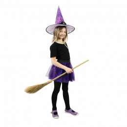 Roztomilý karnevalový kostým s motivem čarodějky udělá radost každé holčičce! Souprava obsahuje šaty a klobouk. Set ve velikosti S je určen pro holčičky ve věkovém rozmezí 4-6 let (110-116 cm). Staň se nejhezčí čarodějnicí karnevalu díky tomuto kostýmu!