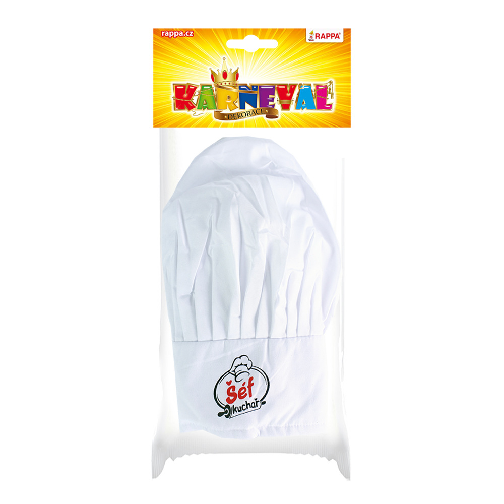 Kuchařská čepice s nápisem "Šéf kuchař" je nezbytným doplňkem hlavy každého malého pomocníka v kuchyni! Tento stylový kousek nesmí žádnému malému kuchaři při vaření chybět!