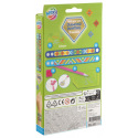 Clementoni Crazy CHIC – kreativní set – náramky v jasných a živých barvách, na které si můžete sestavit své jméno, oblíbená slova nebo zprávy. Využijte svou kreativitu a vyjádřete svůj unikátní styl. Herní sada obsahuje různá písmena z abecedy (černobílé-s bílými písmeny na černém pozadí a barevná písmena na bílém pozadí). Barvy dílků byly pečlivě vybrány na základě aktuální módy. Praktický pořadač udržuje dílky přehledně uložené. Sada obsahuje barevné navlékací nitě, barevné korálky, korálky s písmeny a praktický pořadač. Rozměr balení: 18 x 20 x 6 cm. Věk: 7+