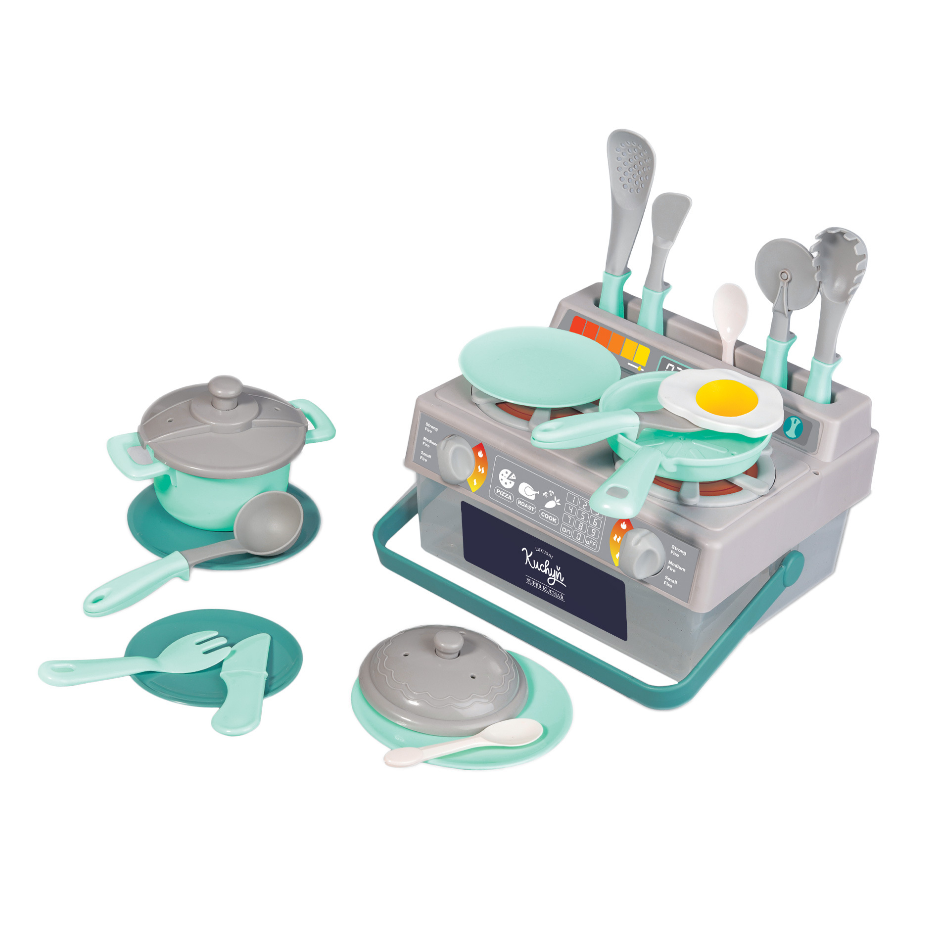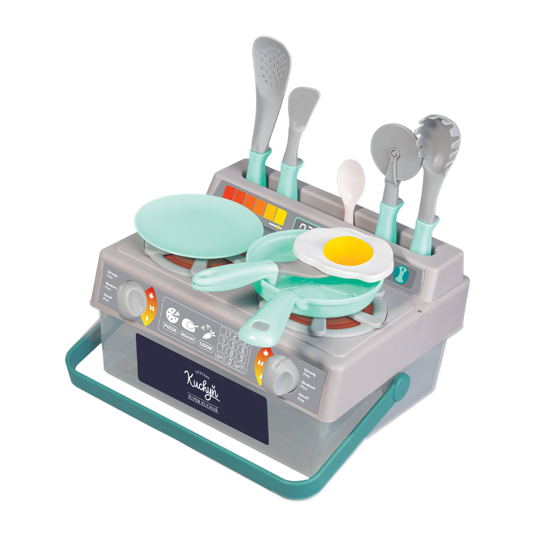 Báječná přenosná kuchyňská sada obsahuje vařič, hrnec, příbory a spoustu jiných věcí potřebných v kuchyni. To vše navíc v paktickém parádním boxu! Vše vyrobeno z kvalitníh plastu.