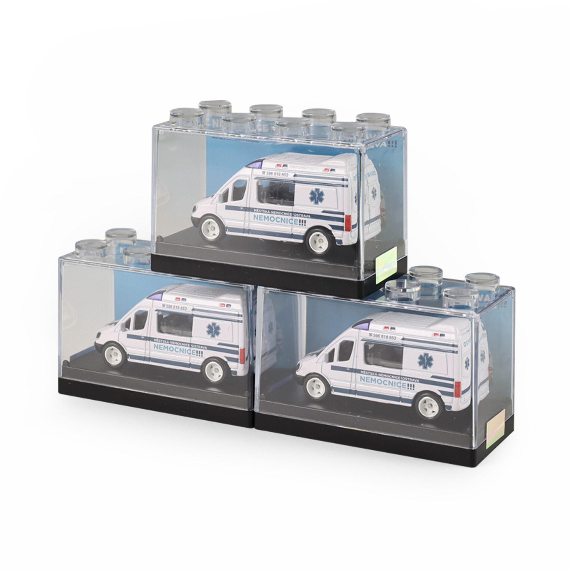 Model kovové sanitky s motivem Městská nemocnice Ostravy. Autíčko jezdí na volný chod a určitě potěší malé i velké sběratele. Díky délce 7 cm je ideální do dětských rukou i sbírky modelů. Skvělý doplněk pro hru na záchranáře!