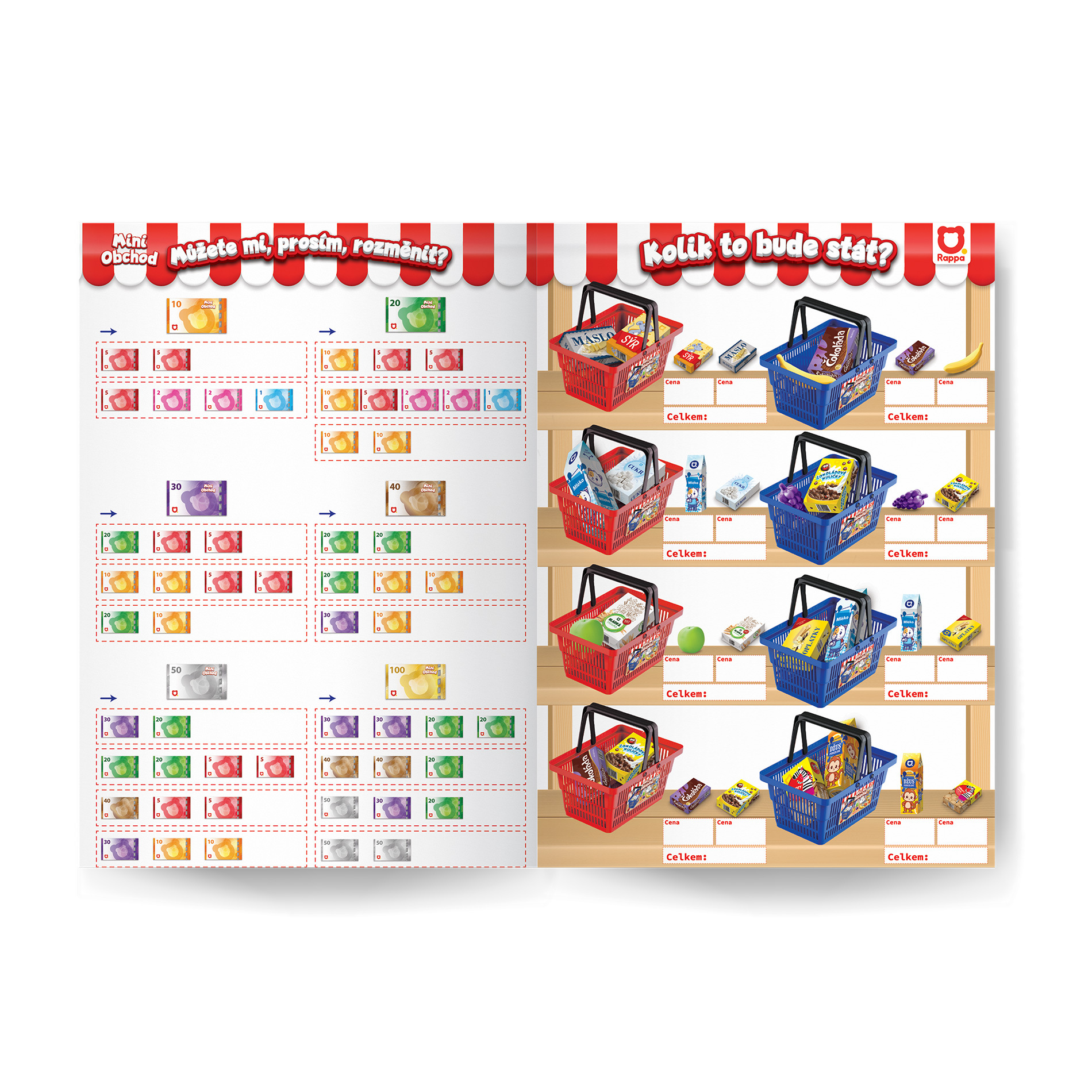 Hra na obchod patří k oblíbeným dětským kratochvílím, a tak výběrem tohoto doplňku jistě nesáhnete vedle! Přináší spoustu zábavy a zároveň podporuje rozvoj dětské představivosti. V našem nákupním košíku najdeš 10 ks papírových atrap potravin českého zboží a 6 ks ovoce. Navíc uvnitř balení najdeš A4 list s úkoly a ceníkem. Tak popadní dětský nákupní košík do ruky a hurá na nákupy! Na speciální podstránce rappa.cz/miniobchod si zákazníci mohou navíc ZDARMA stáhnout další miniatury potravin a vytisknout naučné úkoly o nakupování.
