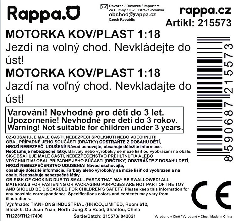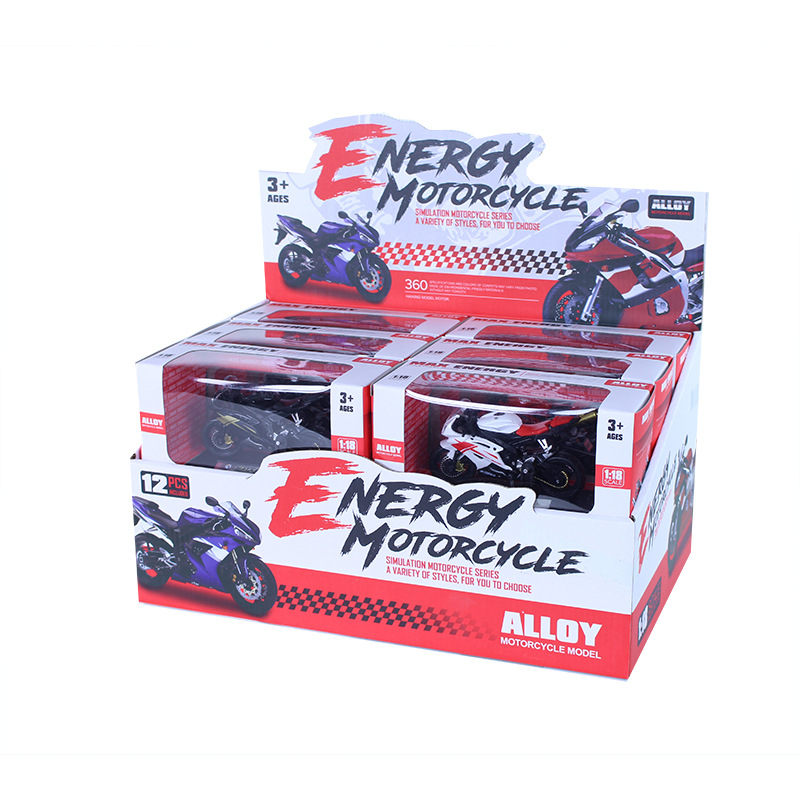 Honda XR400R. Kovové modely motocyklů v modelovém měřítku 1:18. Motocykly mají otáčivá řidítka a odpruženou zadní nápravu. Jsou usazeny na černém plastovém podstavci. Rozměry balení: 15,7x10,4x6,8cm. Věk: 3+