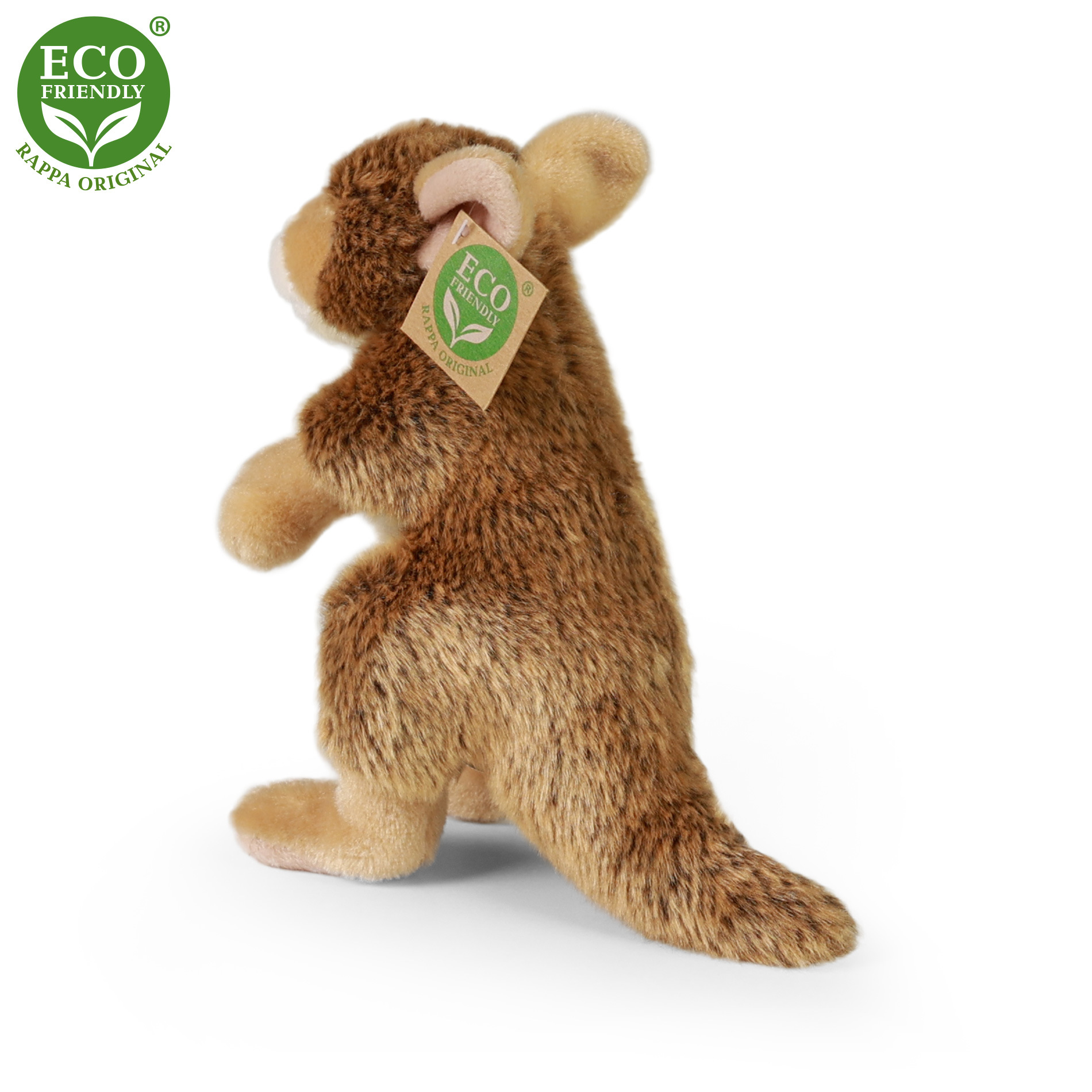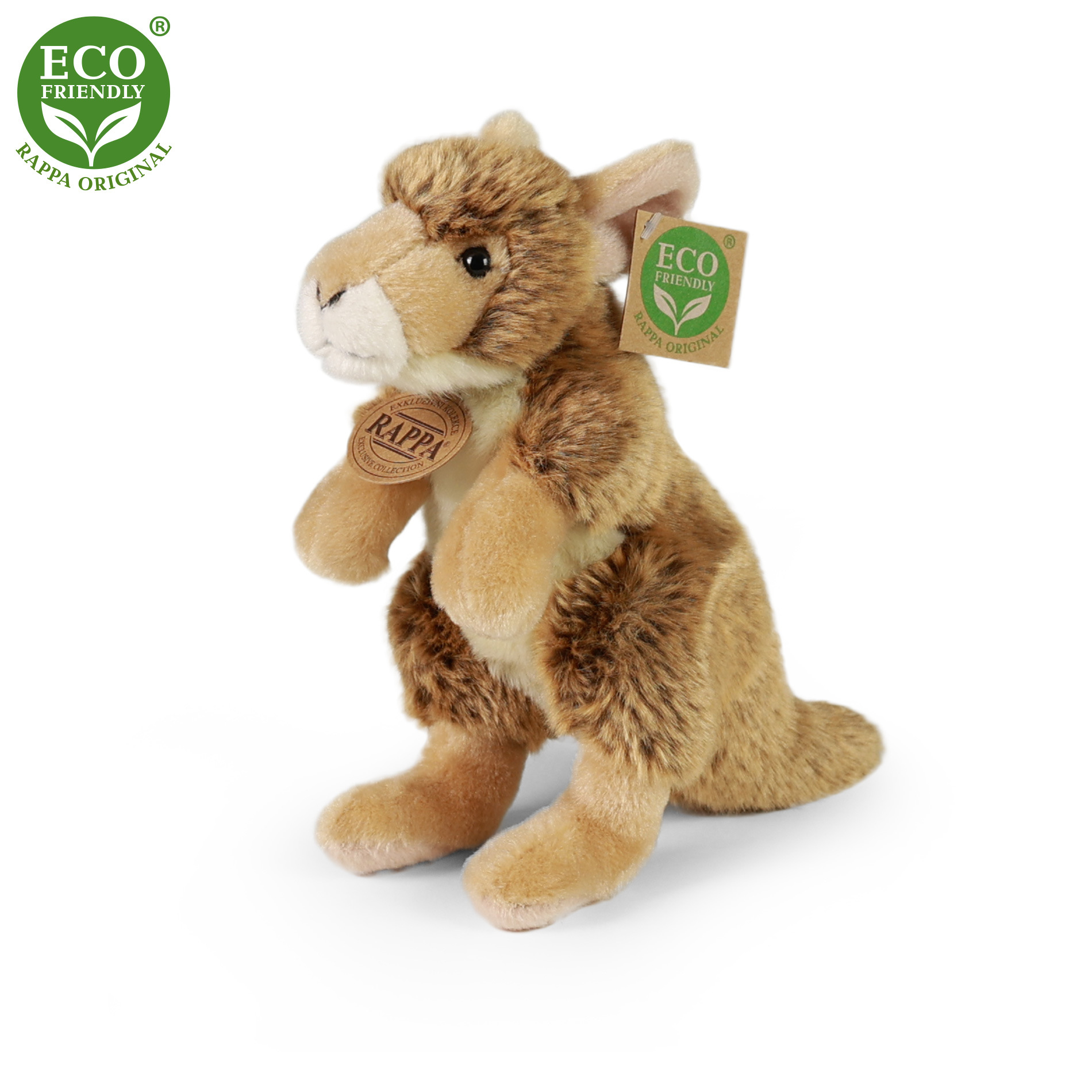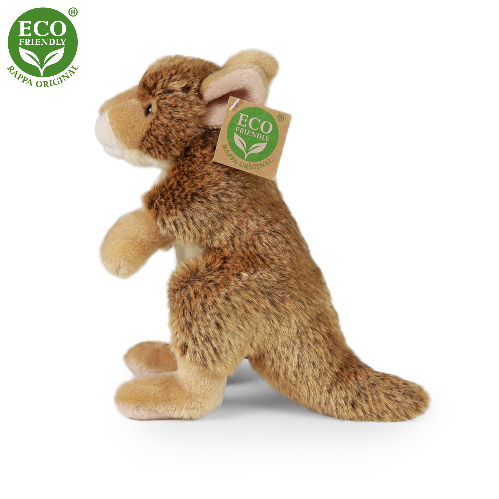 Plyšový klokan je ručně ušitý z vysoce kvalitní, jemné plyše, a díky tomu vypadá jako živý. Tento plyšový vačnatec měří 20 cm a je součástí exkluzivní kolekce plyšových hraček RAPPA. Rozhodli jsme se jít zelenou cestou co nejméně zatěžující životní prostředí - cestou ECO-FRIENDLY. Co to vlastně ECO-FRIENDLY znamená? Výplň plyšové hračky je vyrobena z recyklovaných PET lahví. Tento materiál je zcela bezpečný, na omak nerozeznatelný od standardní výplně a plně atestovaný pro bezpečnost i těch nejmenších.