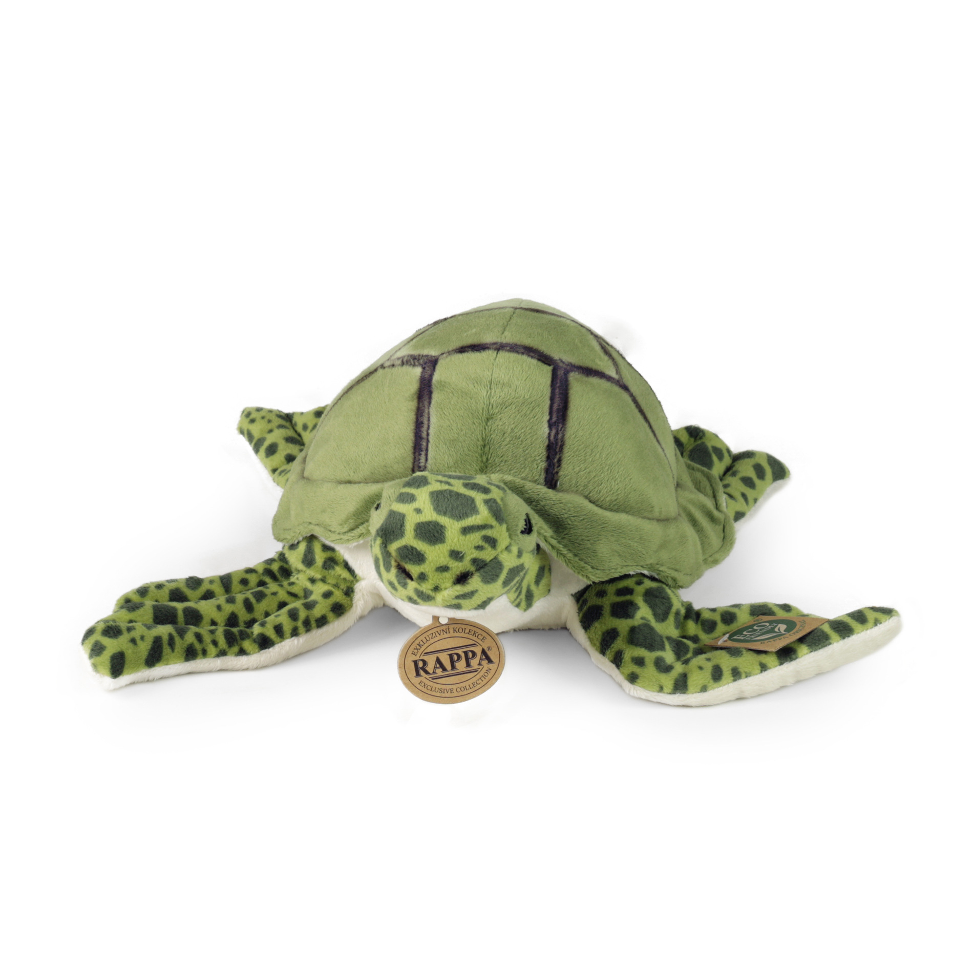 Die Plüsch-Meeresschildkröte in der Größe von 25 cm ist aus hochwertigem Plüsch gefertigt und Teil der exklusiven Plüschtierkollektion von RAPPA. Was bedeutet eigentlich ECO-FRIENDLY? Die Füllung des Plüschspielzeugs besteht aus recycelten PET-Flaschen. Dieses Material ist völlig sicher, fühlt sich nicht anders an als eine Standardfüllung und ist vollständig für die Sicherheit auch der Kleinsten zertifiziert. Wir haben uns entschieden, den umweltfreundlichsten Weg zu gehen - den ECO-FRIENDLY-Weg.